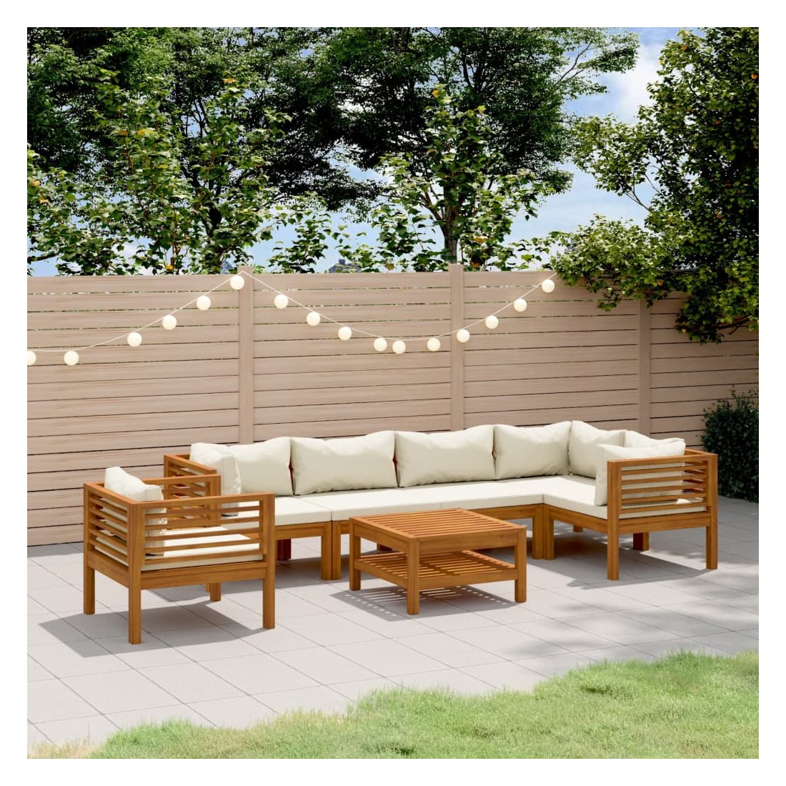 Salon de jardin 7 pcs avec coussin crème Bois d'acacia solide