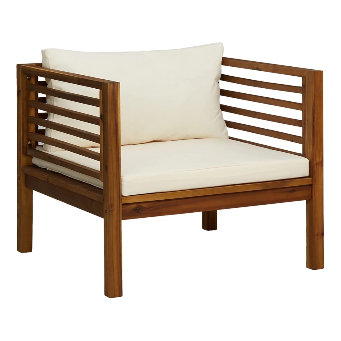 Ce mobilier de jardin en bois est une combinaison parfaite de style et de fonctionnalité. Avec cela dans votre jardin, vous pouvez passer du temps relaxant et apaisant avec votre famille et vos amis. Doté d'un cadre en bois d'acacia massif, l'ensemble de canapé est solide, robuste et durable; et sa finition à l'huile rend l'ensemble de canapé adapté à une utilisation en extérieur. Les coussins amovibles sont bien rembourrés, afin d'offrir un grand confort d'assise. Une table basse au design à lattes unique est également incluse. De plus, grâce à sa conception modulaire, toutes les pièces peuvent être arrangées et personnalisées selon vos besoins. Cet ensemble de sièges d'extérieur sera sûrement le point de mire de votre jardin ou patio. Remarque : afin de prolonger la durée de vie des meubles d'extérieur, nous vous recommandons de les protéger avec une housse imperméable.
