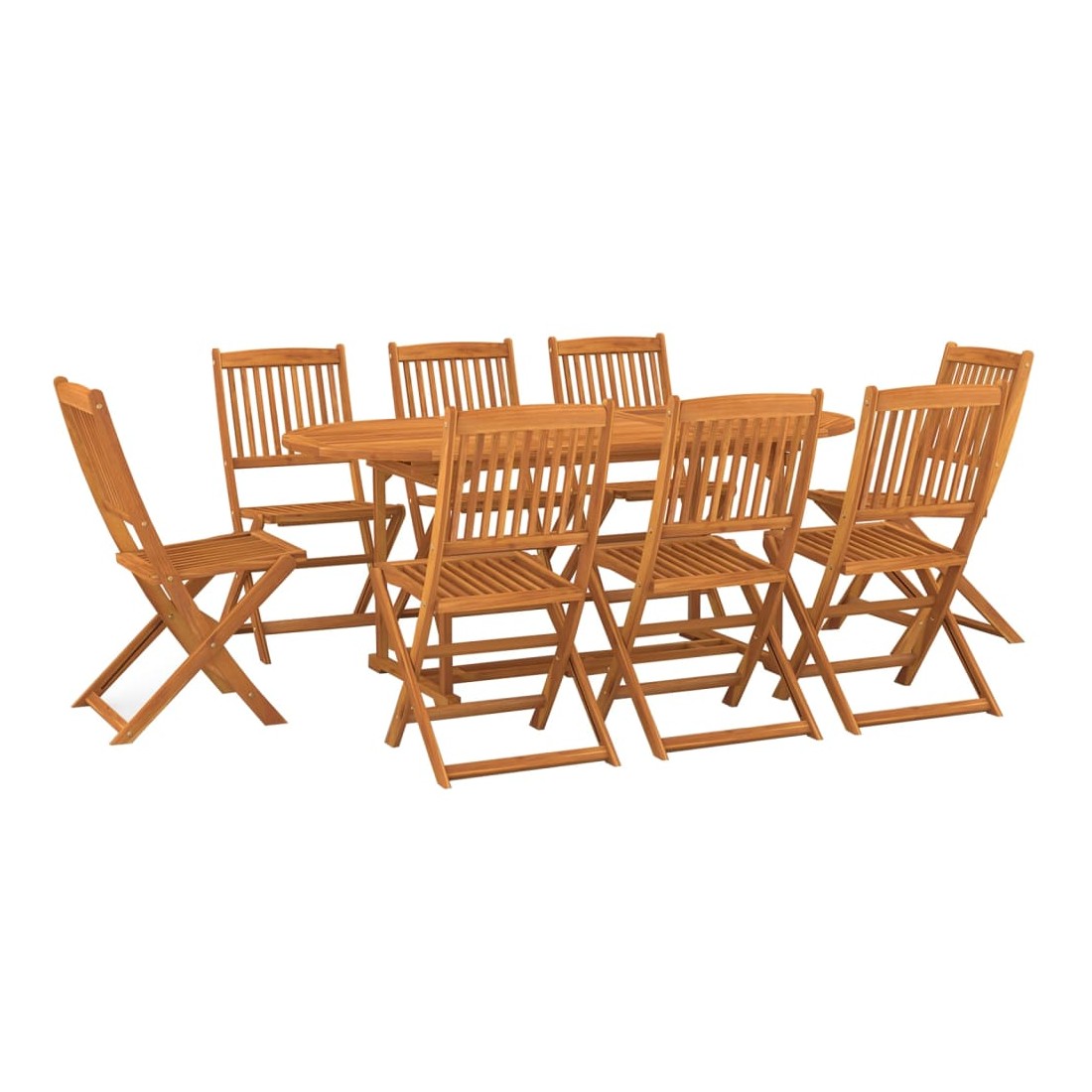 Créez une esthétique convaincante et uniforme dans votre espace extérieur avec cet ensemble de salle à manger de jardin en bois ! Cet ensemble de salle à manger d'extérieur est fabriqué en bois d'acacia massif, un bois dur tropical, qui est résistant aux intempéries et durable pour des années d'utilisation. La surface finie à l'huile est facile à nettoyer avec un chiffon humide. De plus, les chaises de patio peuvent être pliées dans un format compact pour économiser de l'espace lorsqu'elles ne sont pas utilisées. Remarque : afin de prolonger la durée de vie des meubles d'extérieur, nous vous recommandons de les protéger avec une housse imperméable.