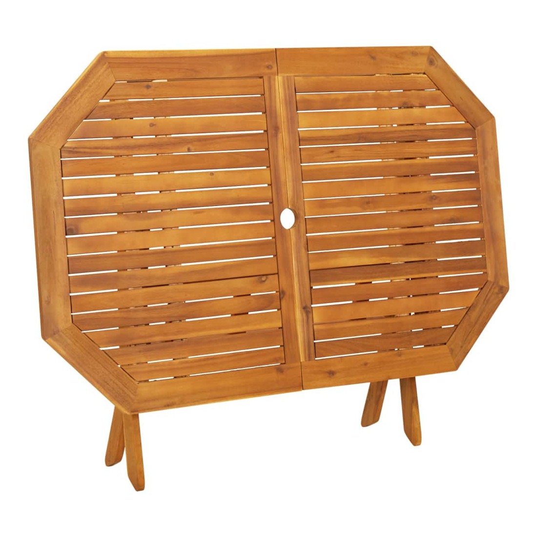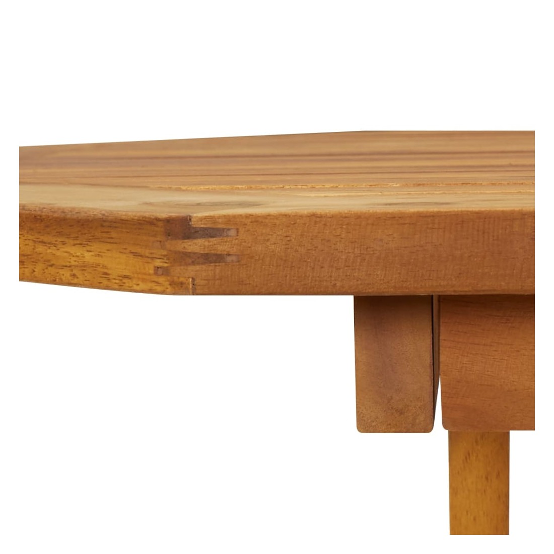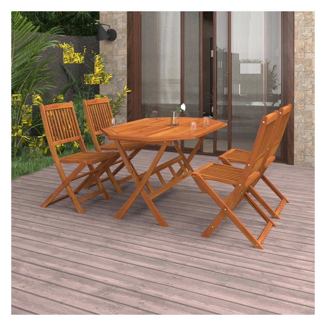 Créez une esthétique convaincante et uniforme dans votre espace extérieur avec cet ensemble de salle à manger de jardin en bois ! Cet ensemble de salle à manger d'extérieur est fabriqué en bois d'acacia massif, un bois dur tropical, qui est résistant aux intempéries et durable pour des années d'utilisation. La surface finie à l'huile est facile à nettoyer avec un chiffon humide. De plus, les chaises et la table de patio peuvent être pliées dans un format compact pour économiser de l'espace lorsqu'elles ne sont pas utilisées. Remarque : afin de prolonger la durée de vie des meubles d'extérieur, nous vous recommandons de les protéger avec une housse imperméable.