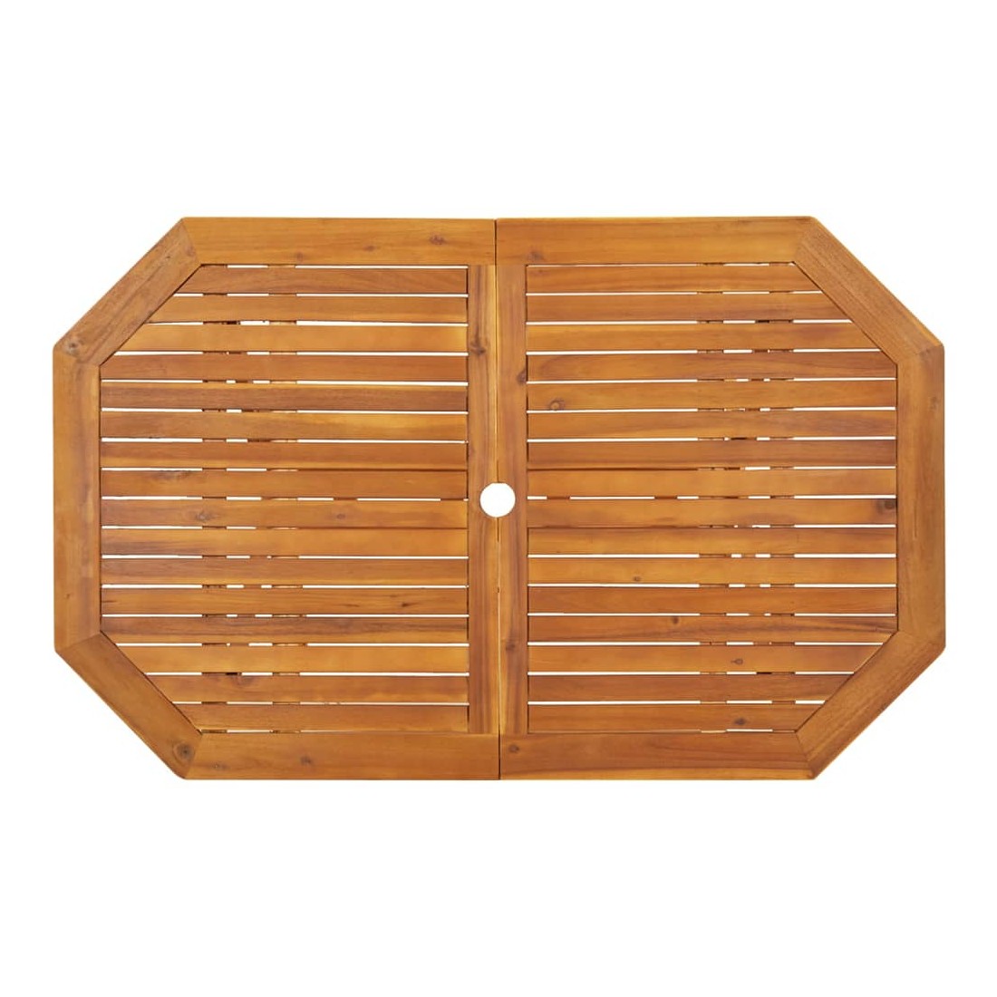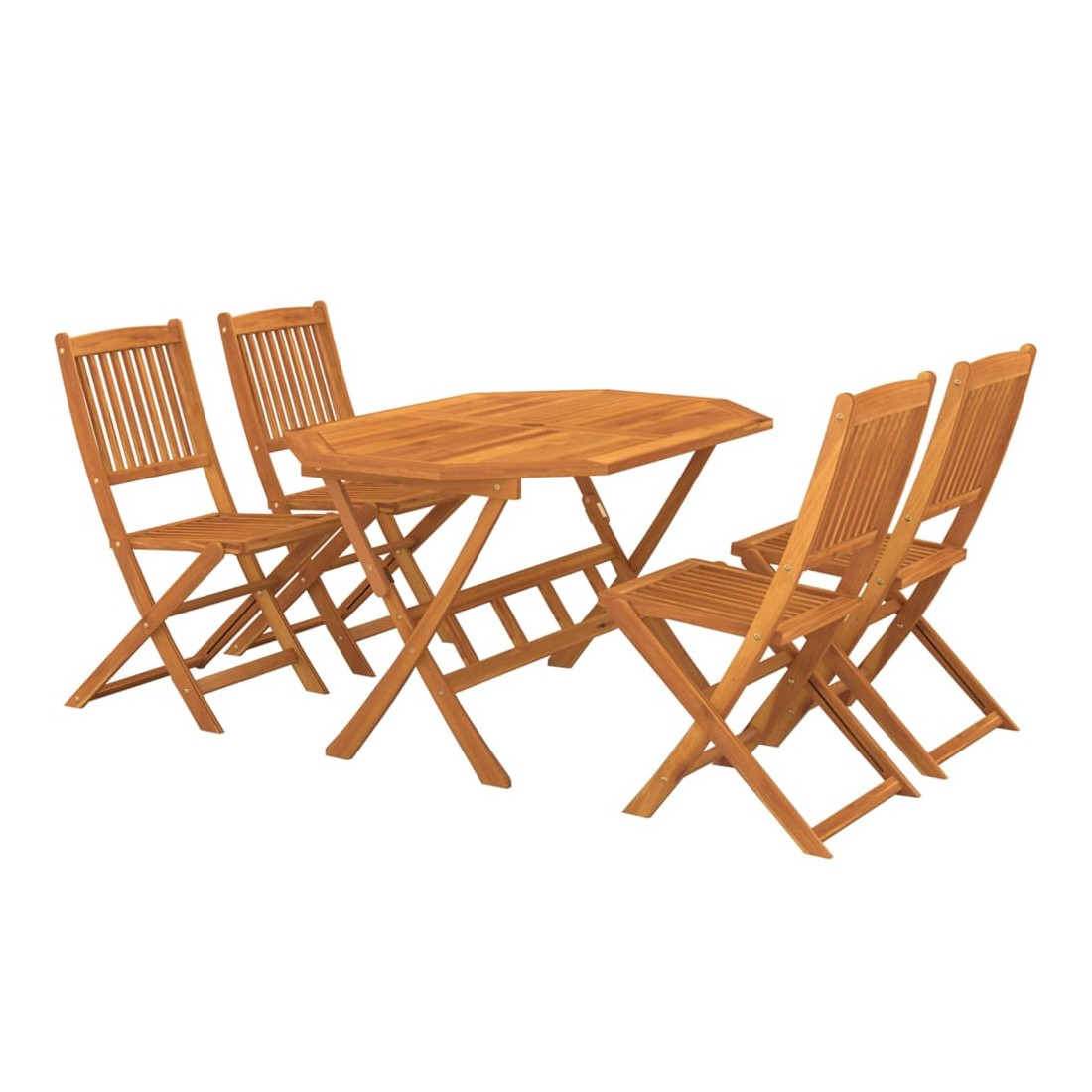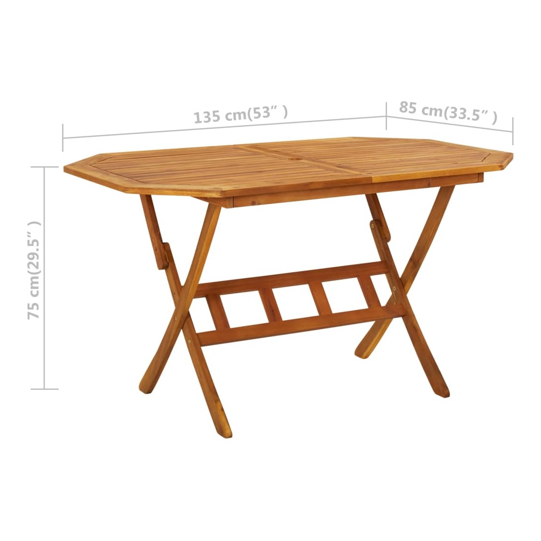 Créez une esthétique convaincante et uniforme dans votre espace extérieur avec cet ensemble de salle à manger de jardin en bois ! Cet ensemble de salle à manger d'extérieur est fabriqué en bois d'acacia massif, un bois dur tropical, qui est résistant aux intempéries et durable pour des années d'utilisation. La surface finie à l'huile est facile à nettoyer avec un chiffon humide. De plus, les chaises et la table de patio peuvent être pliées dans un format compact pour économiser de l'espace lorsqu'elles ne sont pas utilisées. Remarque : afin de prolonger la durée de vie des meubles d'extérieur, nous vous recommandons de les protéger avec une housse imperméable.