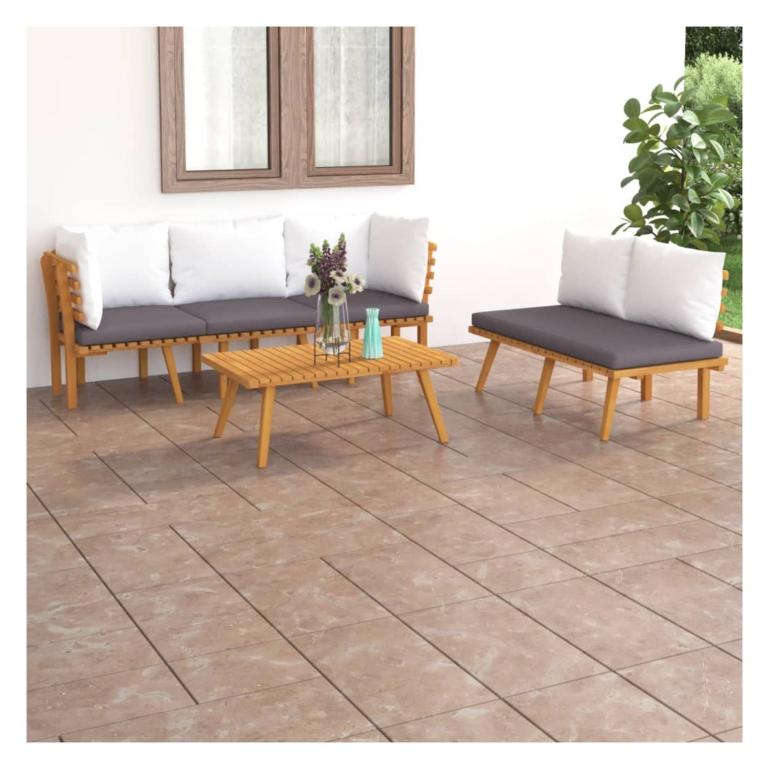 Ce salon de jardin en bois est un excellent choix pour vous détendre et profiter du beau temps, faire une sieste ou discuter avec votre famille ou vos amis. Avec un design à lattes intemporel, l’ensemble de salon en bois ajoute une touche de charme rustique à votre patio, terrasse ou jardin. Fabriqué en bois d'acacia massif, l'ensemble de mobilier d'extérieur est résistant aux intempéries et très durable. Combiné avec les coussins bien rembourrés, cet ensemble de salon de jardin offre le plus grand confort. Vous pouvez le combiner avec d'autres segments modulaires pour créer vos propres configurations d'ensemble de salon de jardin ! Remarque : afin de prolonger la durée de vie des meubles d'extérieur, nous vous recommandons de les protéger avec une housse imperméable.