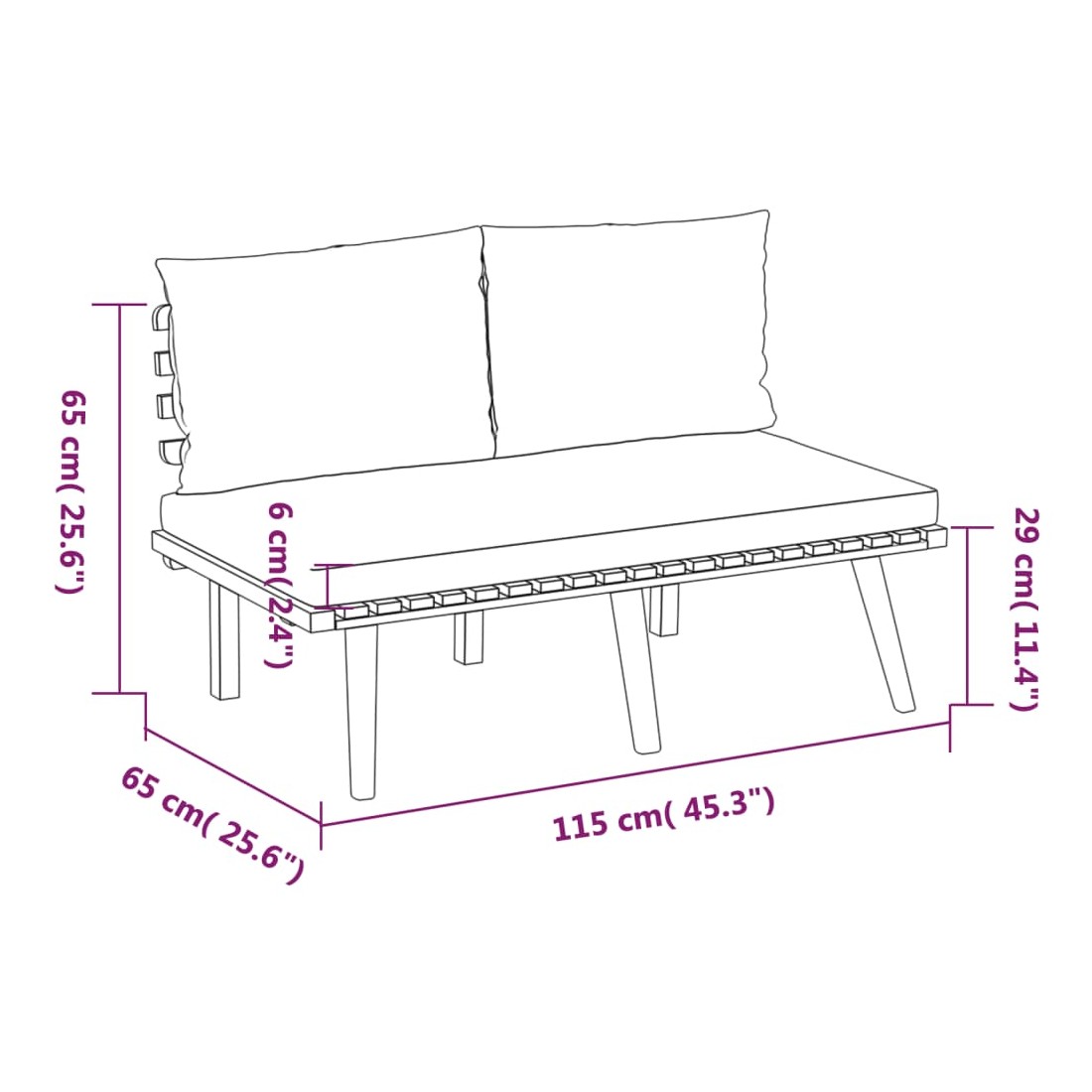 - Dimensions du coussin de siège du banc : 115 x 60 x 6 cm (l x P x H)