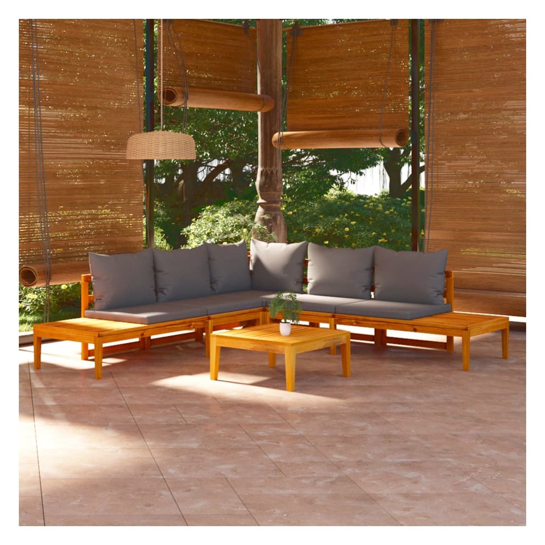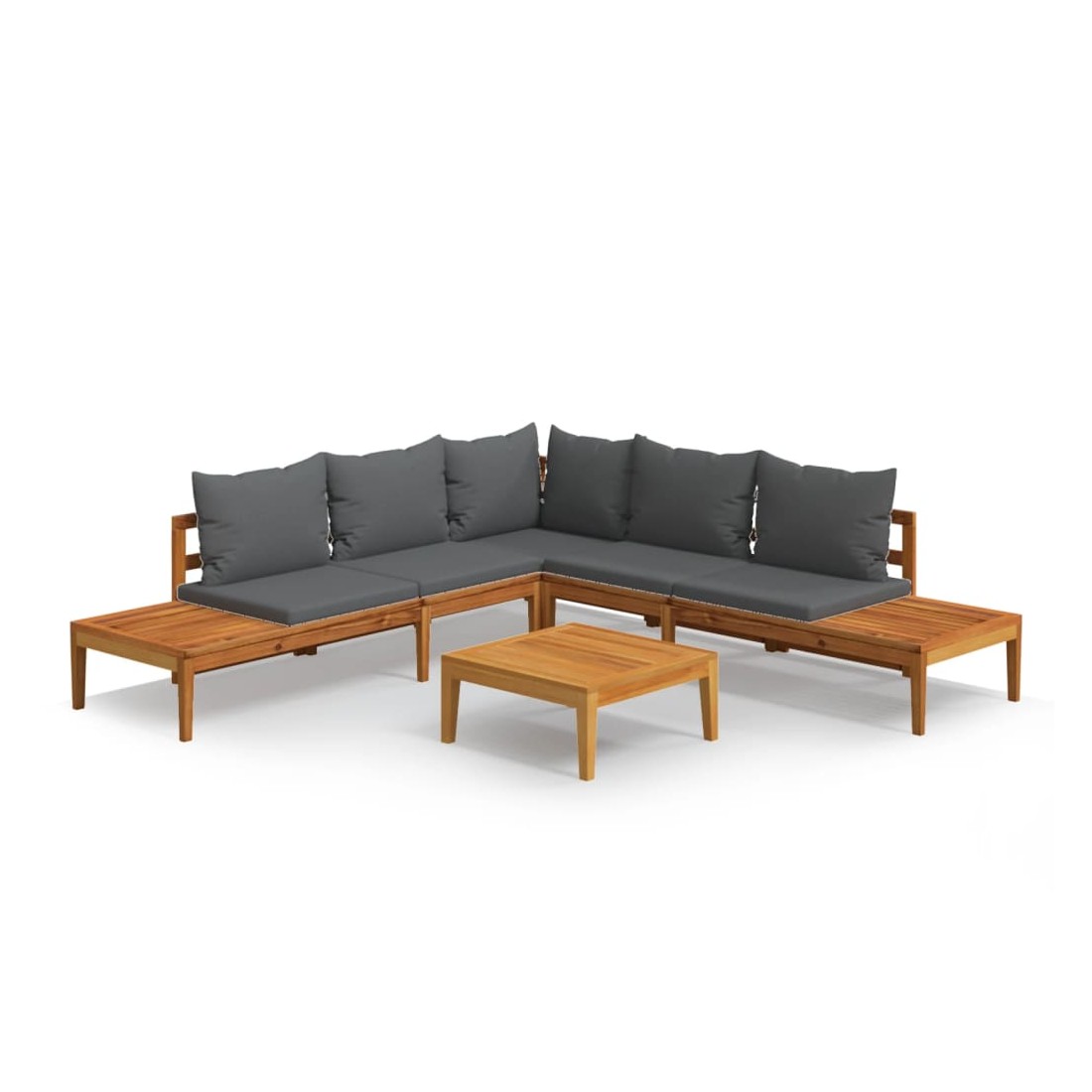 Ce salon de jardin en bois est un excellent choix pour vous détendre et profiter du beau temps, faire une sieste ou discuter avec votre famille ou vos amis. Avec un design intemporel, l’ensemble de salon ajoute une touche de charme rustique à votre patio, terrasse ou jardin. Fabriqué en bois d'acacia massif, l'ensemble de mobilier d'extérieur est résistant aux intempéries et très durable. Combiné avec les coussins bien rembourrés, cet ensemble de salon de patio offre le plus grand confort. La table qui s'assortit avec le banc peut être assemblée à gauche ou à droite selon vos besoins. Vous pouvez également combiner l'ensemble de canapé avec d'autres segments modulaires pour créer vos propres configurations d'ensemble de salon de jardin ! Remarque : afin de prolonger la durée de vie des meubles d'extérieur, nous vous recommandons de les protéger avec une housse imperméable.