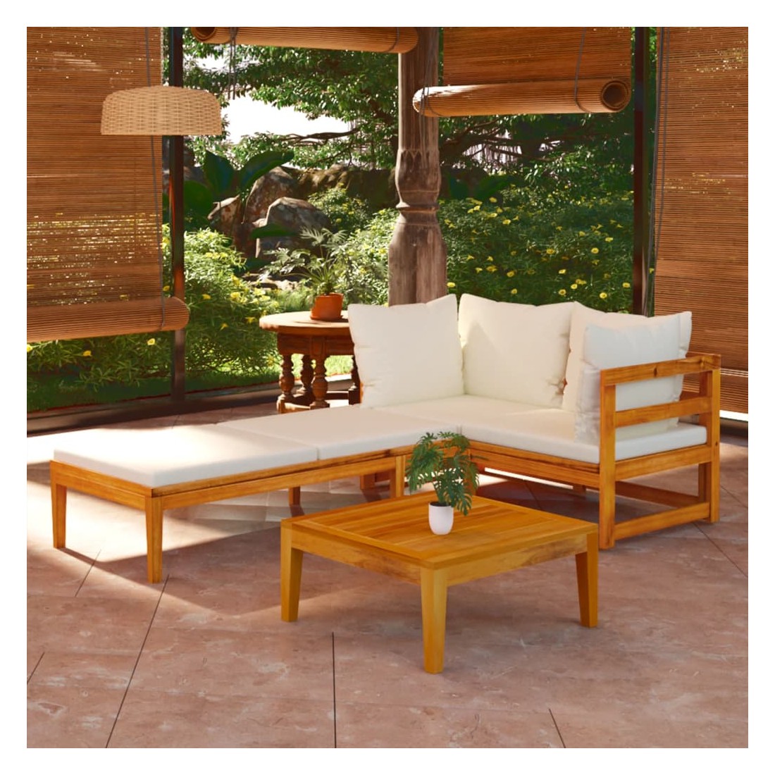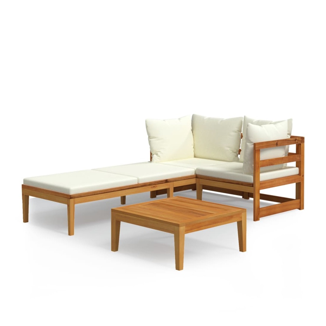 Ce salon de jardin en bois est un excellent choix pour vous détendre et profiter du beau temps, faire une sieste ou discuter avec votre famille ou vos amis. Avec un design intemporel, l’ensemble de salon ajoute une touche de charme rustique à votre patio, terrasse ou jardin. Fabriqué en bois d'acacia massif, l'ensemble de mobilier d'extérieur est résistant aux intempéries et très durable. Combiné avec les coussins bien rembourrés, cet ensemble de salon de patio offre le plus grand confort. L'accoudoir de la chaise longue peut être assemblé à gauche ou à droite selon vos besoins. Vous pouvez également combiner l'ensemble de canapé avec d'autres segments modulaires pour créer vos propres configurations d'ensemble de salon de jardin ! Remarque : afin de prolonger la durée de vie des meubles d'extérieur, nous vous recommandons de les protéger avec une housse imperméable.