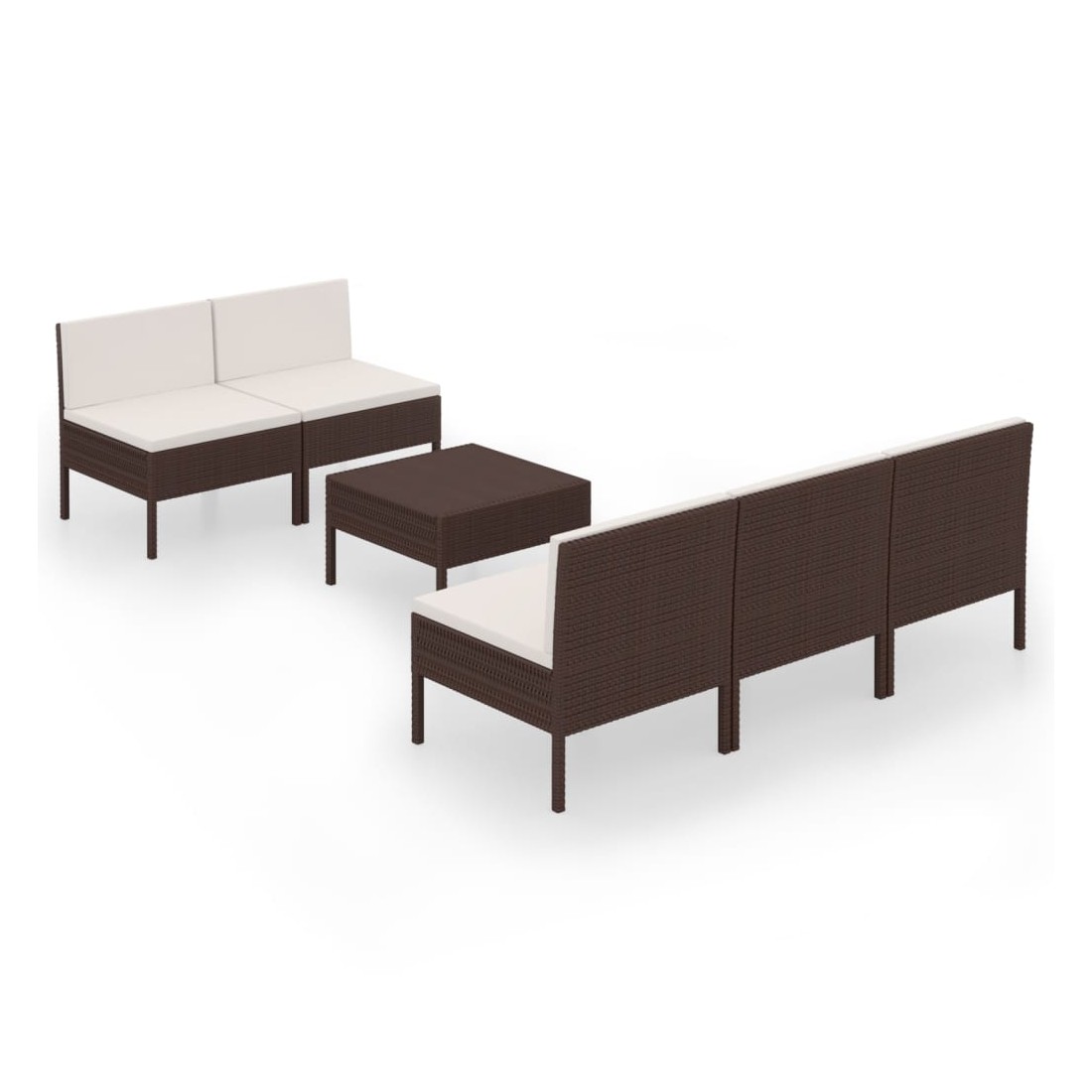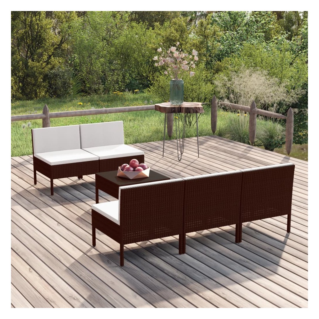 Salon de jardin 6 pcs avec coussins Résine tressée Marron
