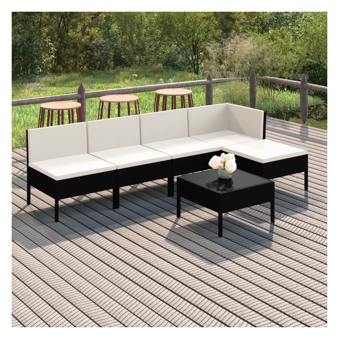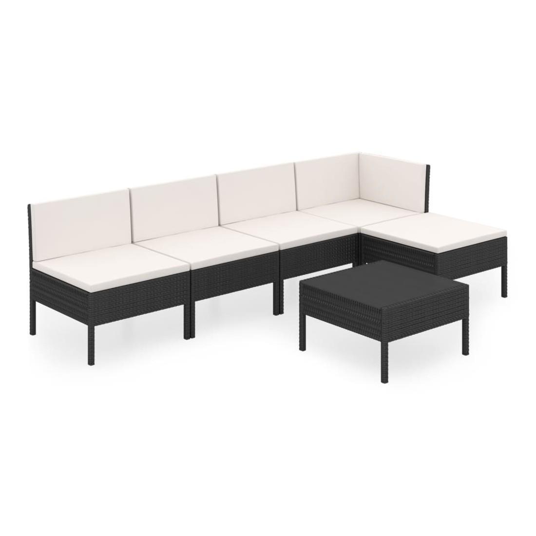 Salon de jardin 6 pcs avec coussins résine tressée noir