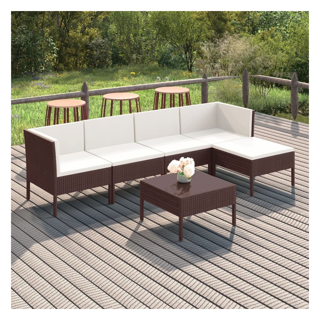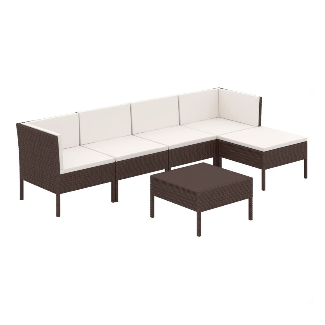 Salon de jardin 6 pcs avec coussins Résine tressée Marron