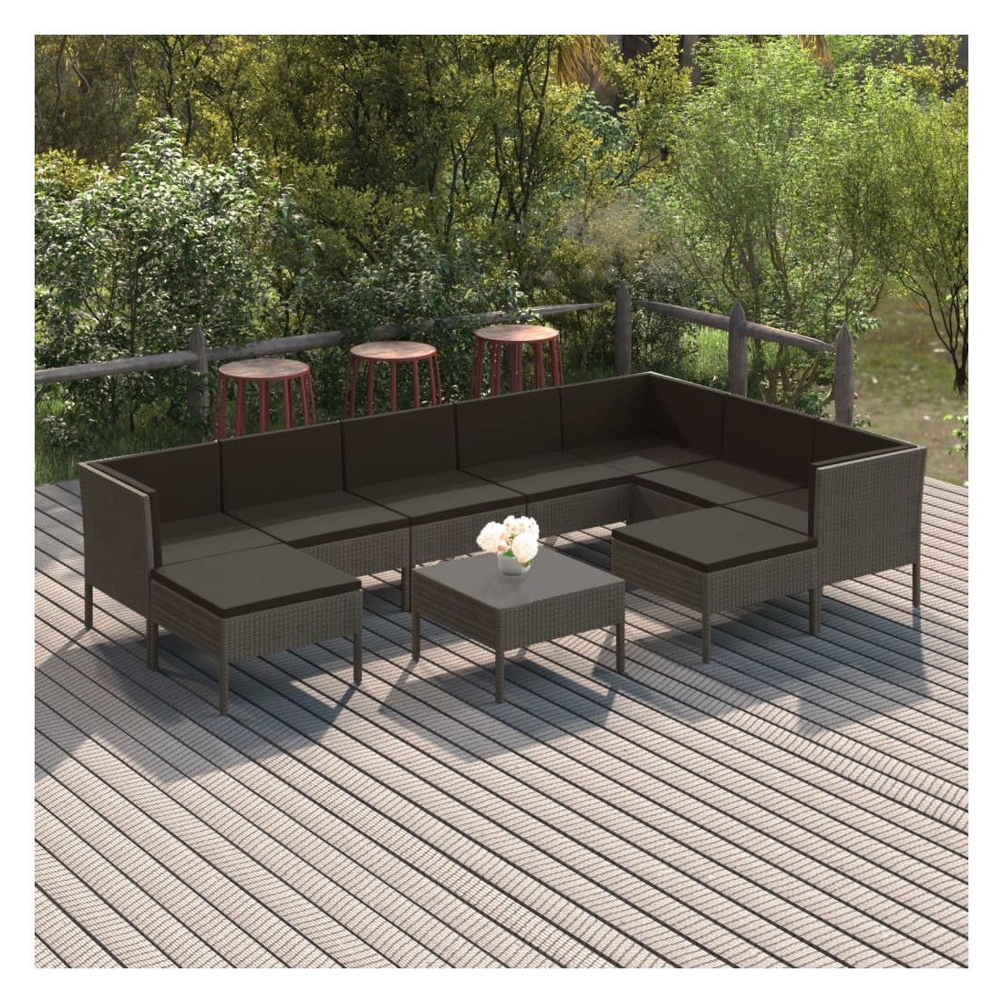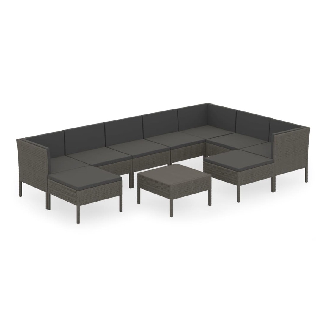 Salon de jardin 10 pcs avec coussins Résine tressée Gris