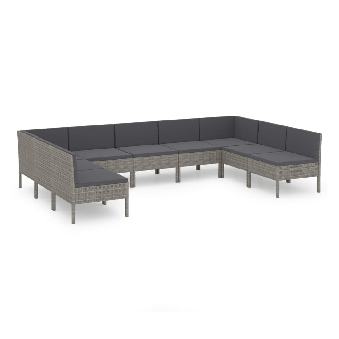 Salon de jardin 9 pcs avec coussins Résine tressée Gris