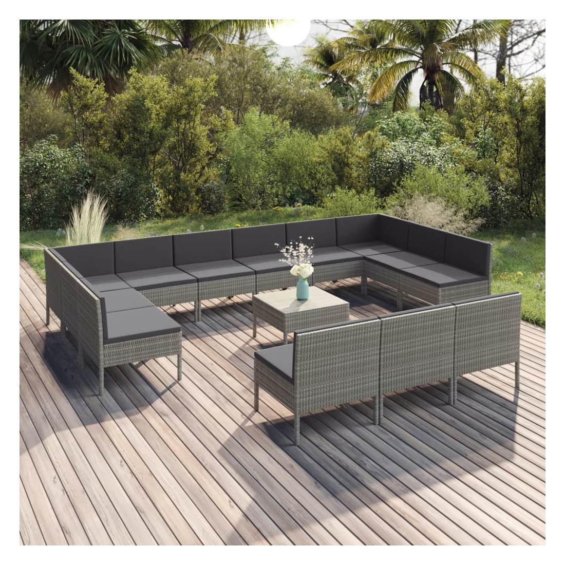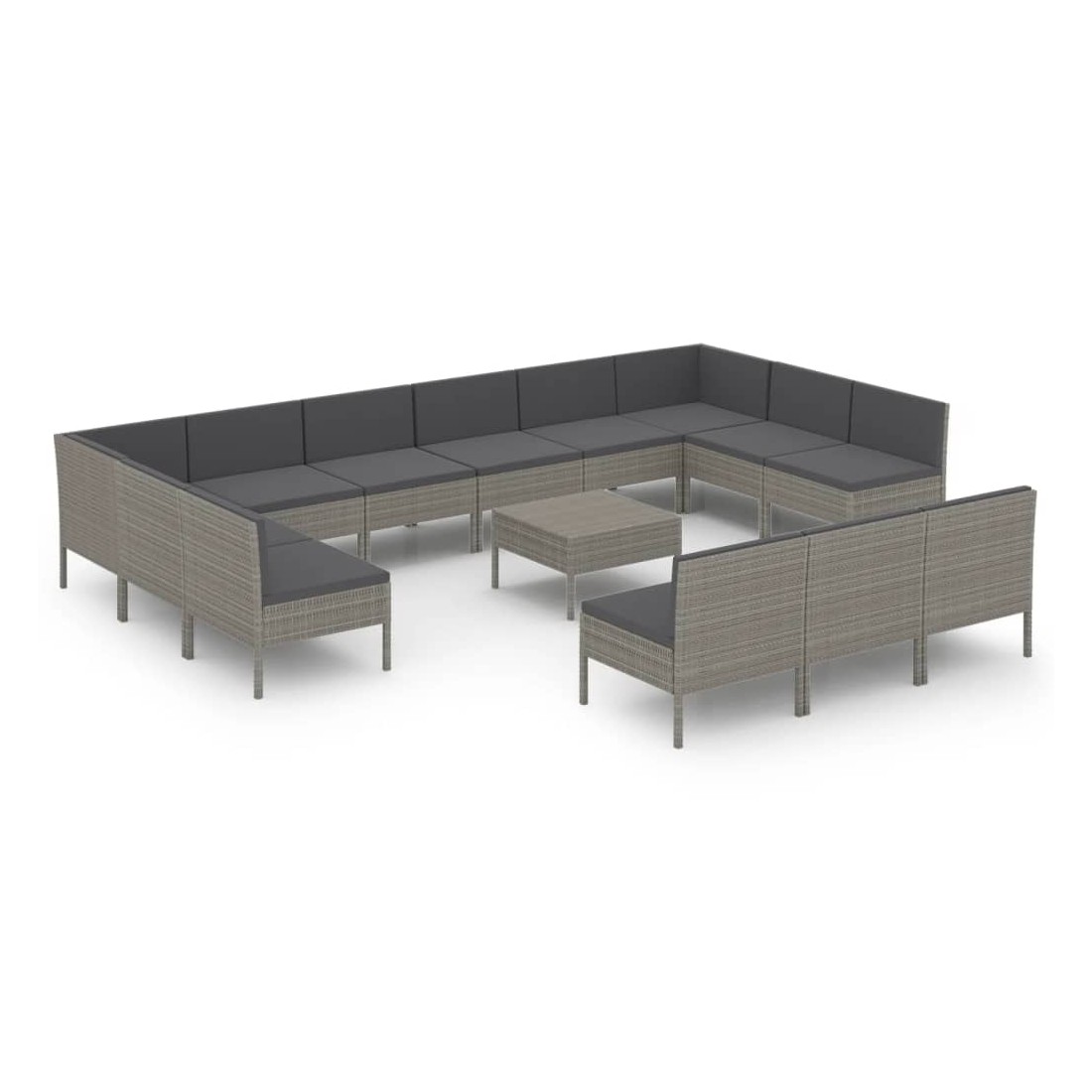 Salon de jardin 14 pcs avec coussins Résine tressée Gris