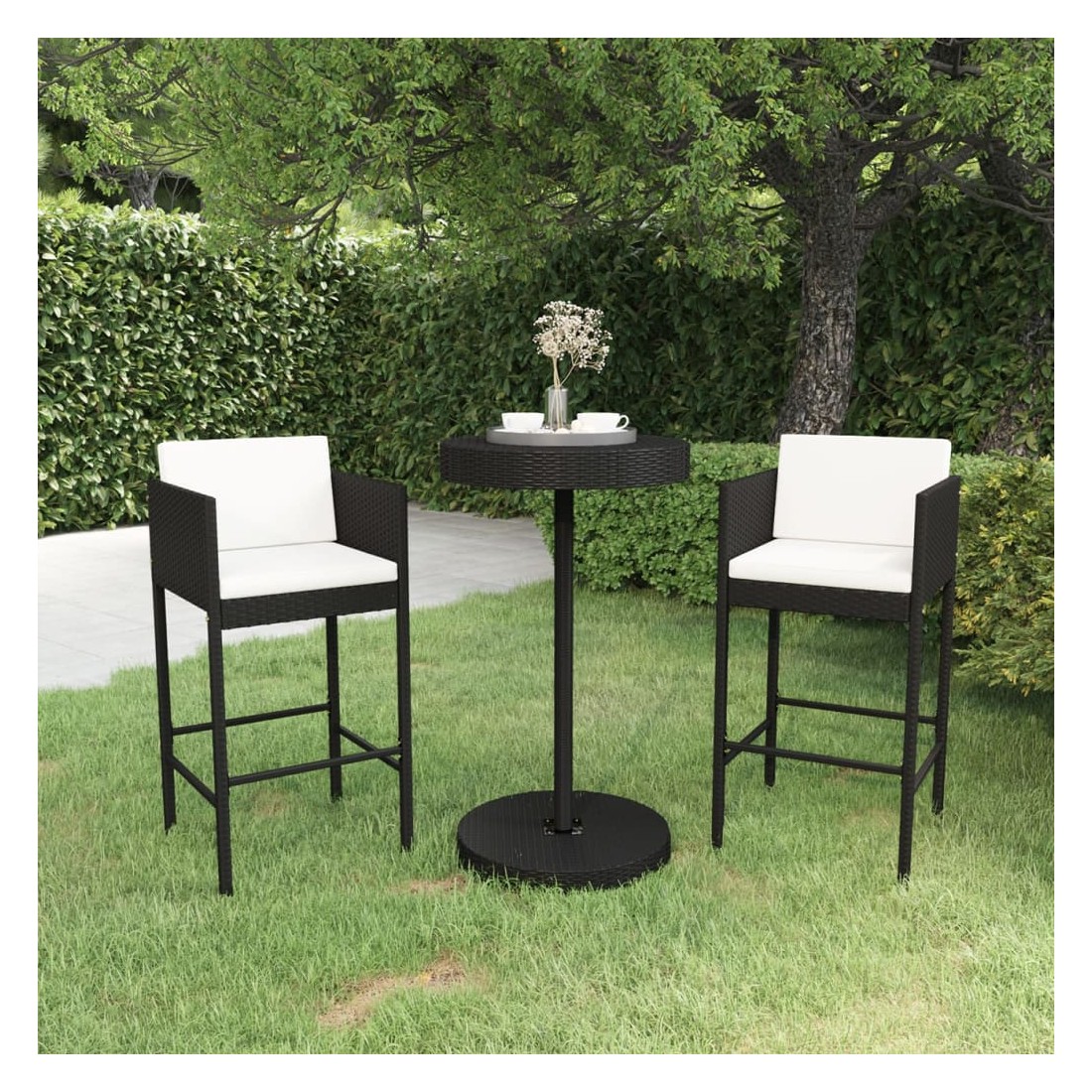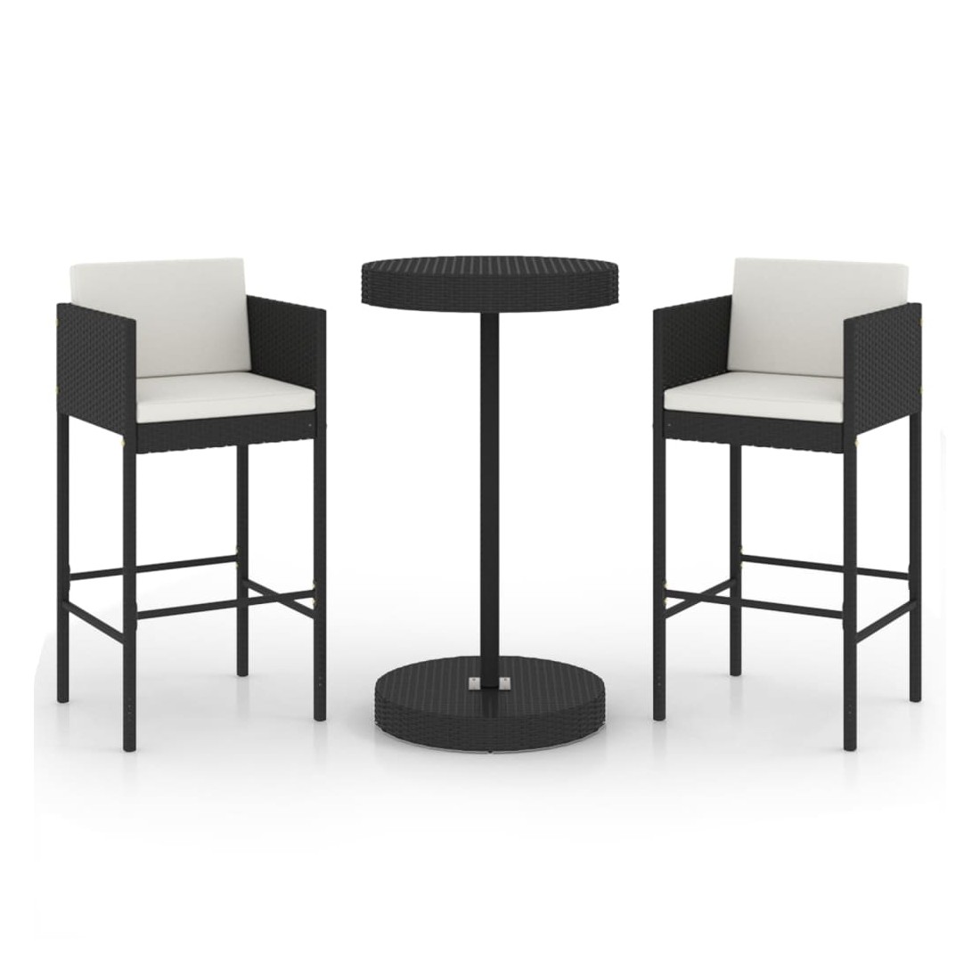 Cet ensemble élégant de bar de jardin vous permet de passer des moments agréables et confortables avec votre famille et vos amis. Fabriqué en rotin PE résistant aux intempéries et à l'eau, cet ensemble de bar d'extérieur est facile à nettoyer, résistant et adapté à un usage quotidien. Le cadre en acier revêtu de poudre rend la table et les tabourets robustes et durables. Le plateau rond est idéal pour poser des boissons, de la nourriture ou des objets décoratifs. Le repose-pieds et les coussins ajoutent un confort d'assise supplémentaire au tabouret. Grâce à la construction légère, tous les éléments sont faciles à déplacer. Remarque : afin de prolonger la durée de vie des meubles d'extérieur, nous vous recommandons de les protéger avec une housse imperméable.