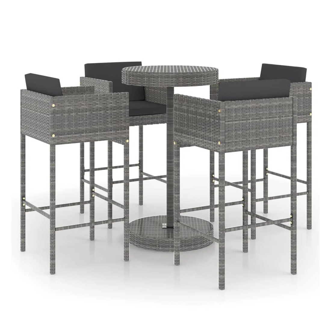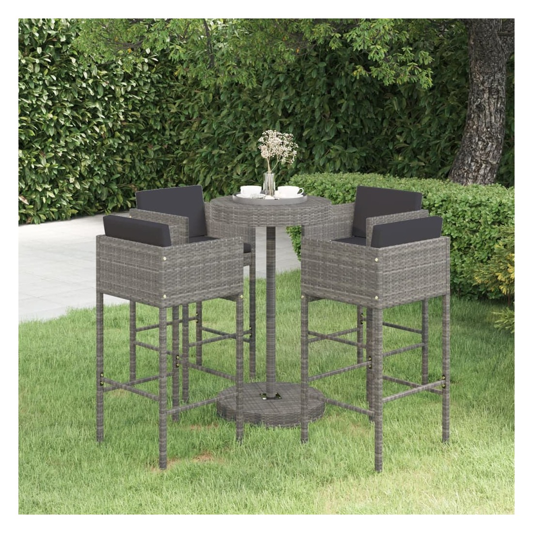 Ensemble de bar de jardin 5 pcs et coussins Résine tressée Gris