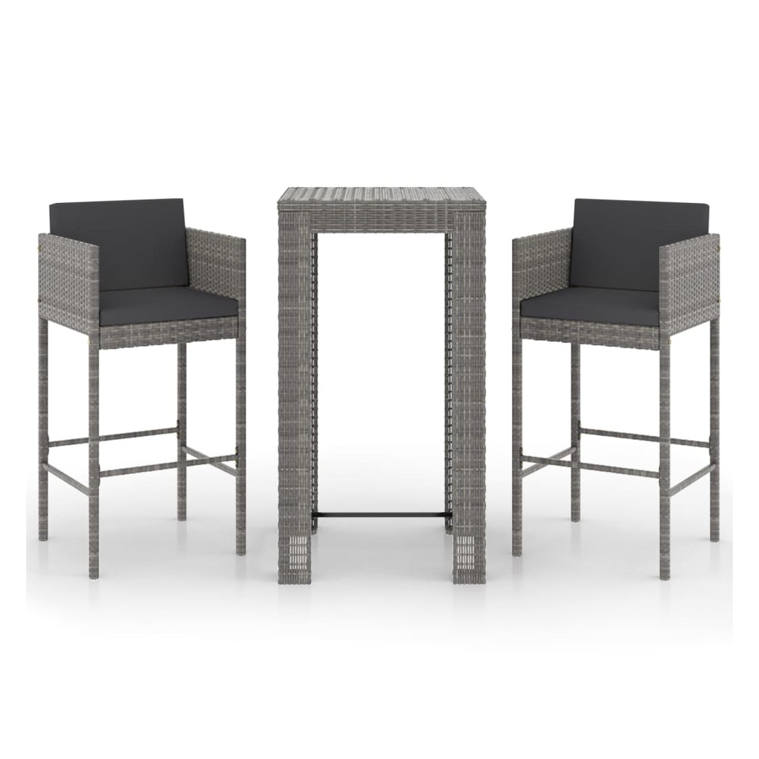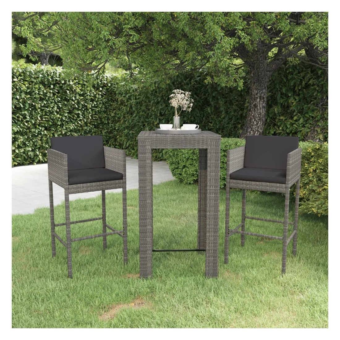Ensemble de bar de jardin 3 pcs et coussins Résine tressée Gris