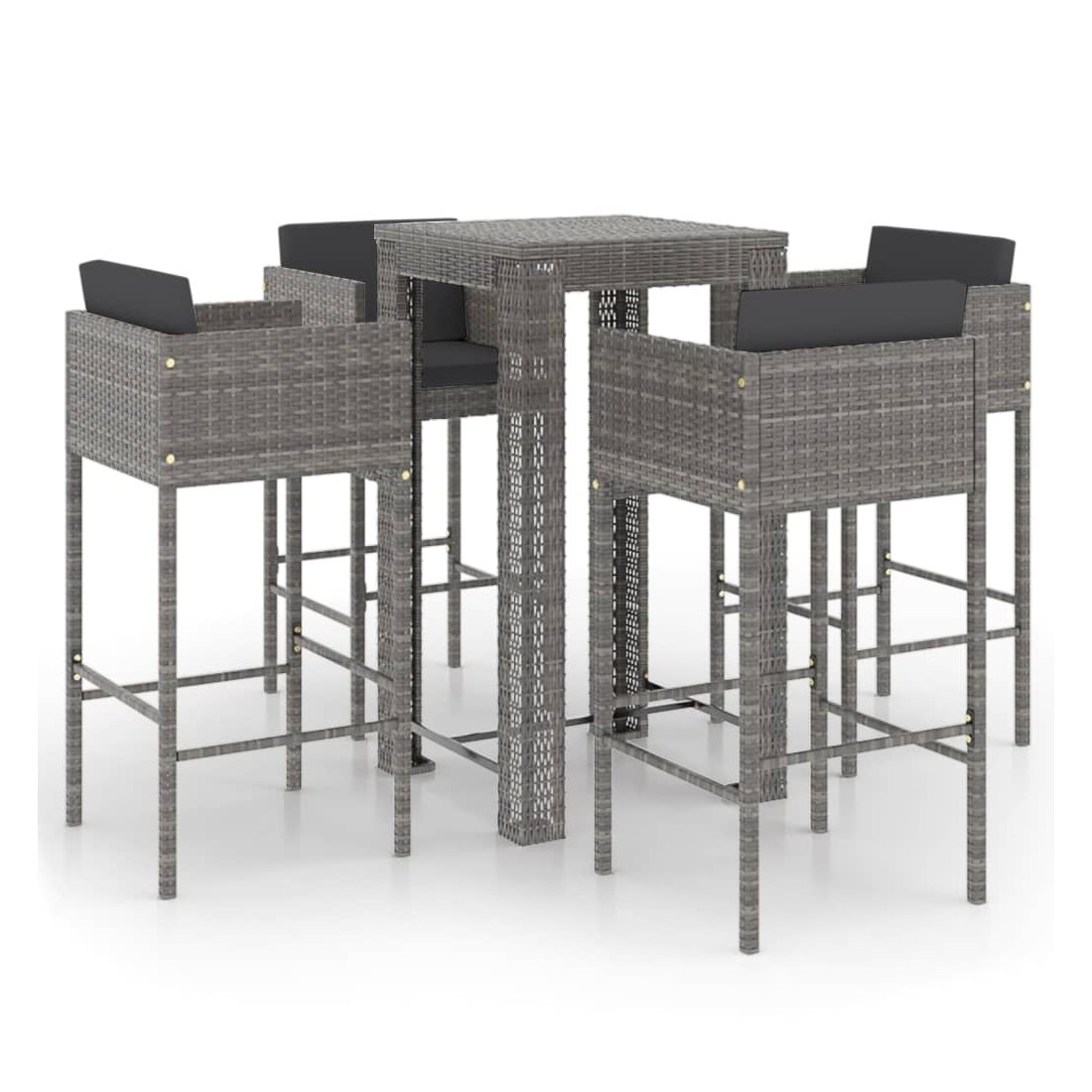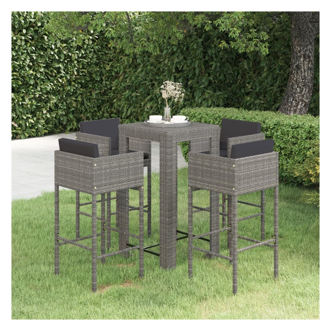 Ensemble de bar de jardin 5 pcs et coussins Résine tressée Gris