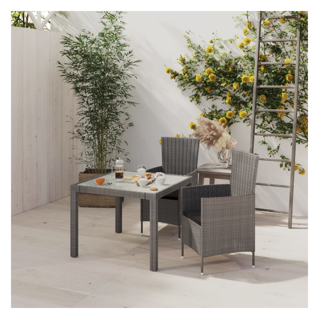 Avec un design élégant et un cadre en acier durable, cet ensemble de meubles de salle à manger est un choix parfait pour votre espace de vie extérieur. Cet ensemble de salle à manger de jardin dispose d’un cadre en acier enduit de poudre, ce qui rend la table et les chaises stables et durables. Grâce à la résine tressée résistante aux intempéries, les meubles d'extérieur sont faciles à nettoyer. Les coussins sont amovibles et faciles à nettoyer. De plus, les coussins épais ajoutent un confort d'assise supplémentaire. Remarque : afin de prolonger la durée de vie des meubles d'extérieur, nous vous recommandons de les protéger avec une housse imperméable.