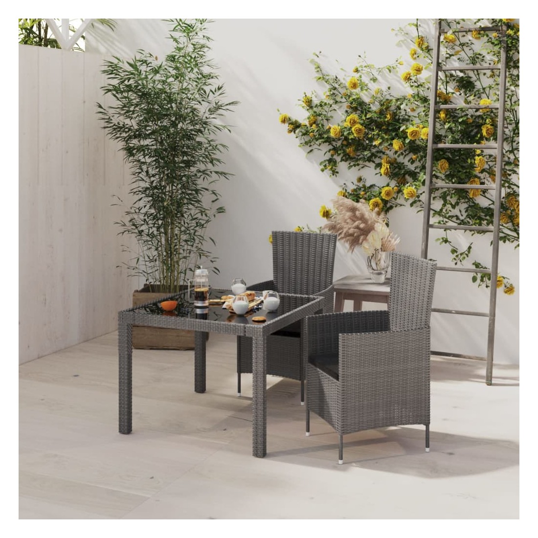 Avec un design élégant et un cadre en acier durable, cet ensemble de meubles de salle à manger est un choix parfait pour votre espace de vie extérieur. Cet ensemble de salle à manger de jardin dispose d’un cadre en acier enduit de poudre, ce qui rend la table et les chaises stables et durables. Grâce à la résine tressée résistante aux intempéries, les meubles d'extérieur sont faciles à nettoyer. Les coussins sont amovibles et faciles à nettoyer. De plus, les coussins épais ajoutent un confort d'assise supplémentaire. Remarque : afin de prolonger la durée de vie des meubles d'extérieur, nous vous recommandons de les protéger avec une housse imperméable.
