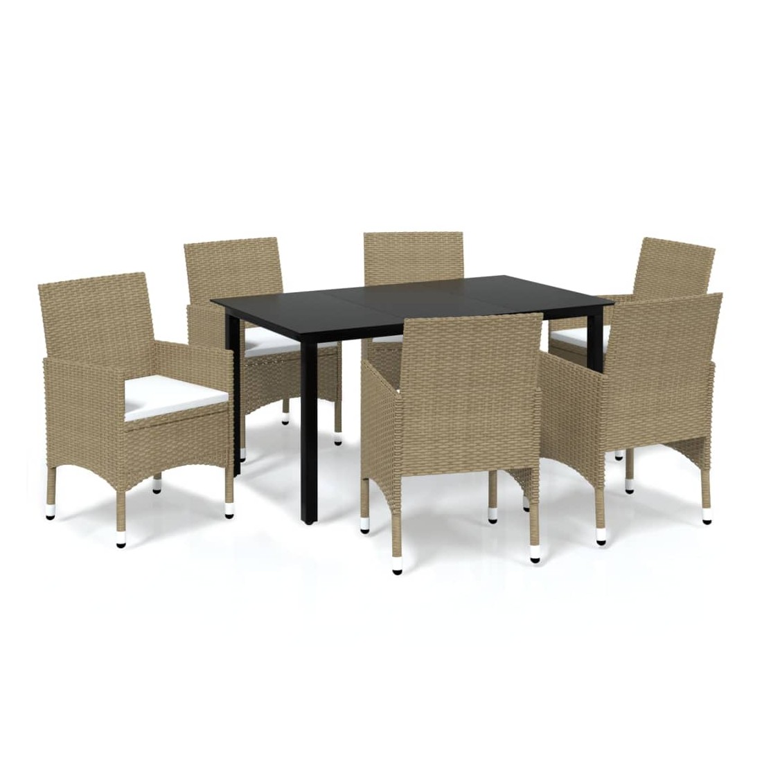 Cet ensemble de salle à manger de jardin est une combinaison parfaite de style et de fonctionnalité et est destiné à être le point de mire de votre jardin, balcon ou patio. Avec un cadre en acier robuste enveloppé de résine tressée résistante aux intempéries, les chaises de jardin sont à l'épreuve de la rouille et de la moisissure, offrant des années de détente de qualité. La table d'extérieur présente un dessus de table en verre aux lignes simples, facile à nettoyer et adapté à une utilisation en extérieur. Le cadre en aluminium assure également la stabilité et la robustesse. De plus, les coussins bien rembourrés offrent un confort ultime pendant votre temps assis. Cet ensemble de salle à manger de patio est facile à déplacer grâce à sa construction légère. Remarque : afin de prolonger la durée de vie des meubles d'extérieur, nous vous recommandons de les protéger avec une housse imperméable.
