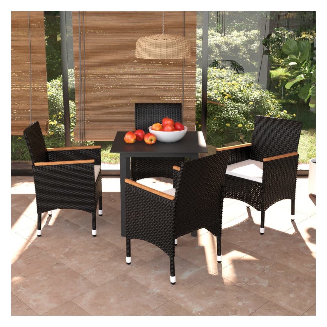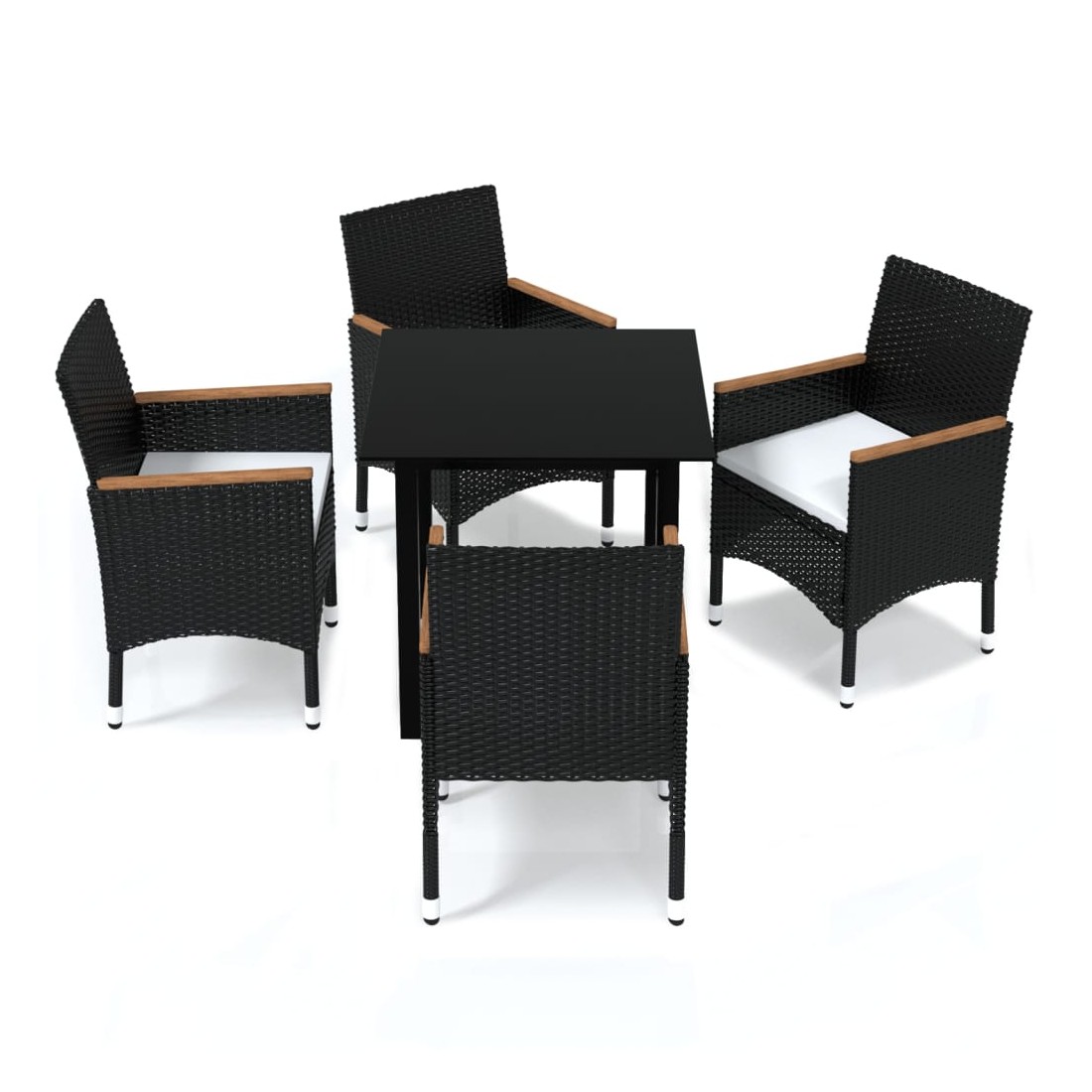 Cet ensemble de salle à manger de jardin est une combinaison parfaite de style et de fonctionnalité et est destiné à être le point de mire de votre jardin, balcon ou patio. Avec un cadre en acier robuste enveloppé de résine tressée résistante aux intempéries, les chaises de jardin sont à l'épreuve de la rouille et de la moisissure, offrant des années de détente de qualité. Les accoudoirs sont joliment décorés avec du bois d'acacia massif avec une finition à l'huile naturelle, ce qui apporte un sentiment de charme rustique. La table d'extérieur présente un dessus de table en verre aux lignes simples, facile à nettoyer et adapté à une utilisation à l'extérieur. Le cadre en aluminium assure également la stabilité et la robustesse. De plus, les coussins bien rembourrés offrent un confort u