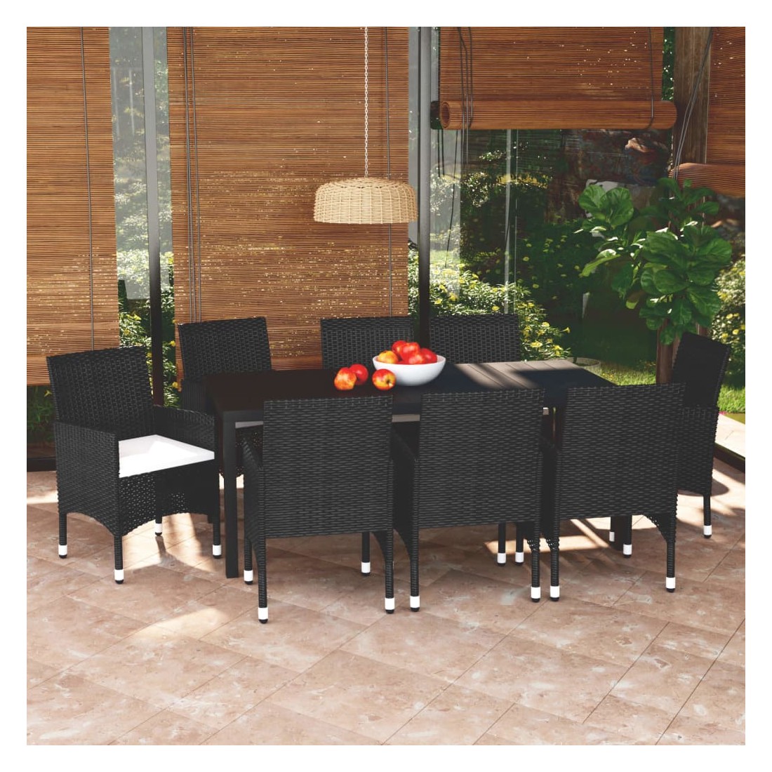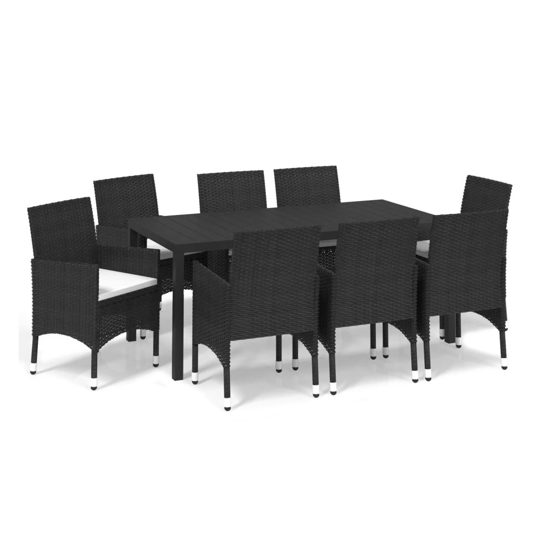 Ensemble à manger de jardin coussins 9pcs Résine tressée Noir