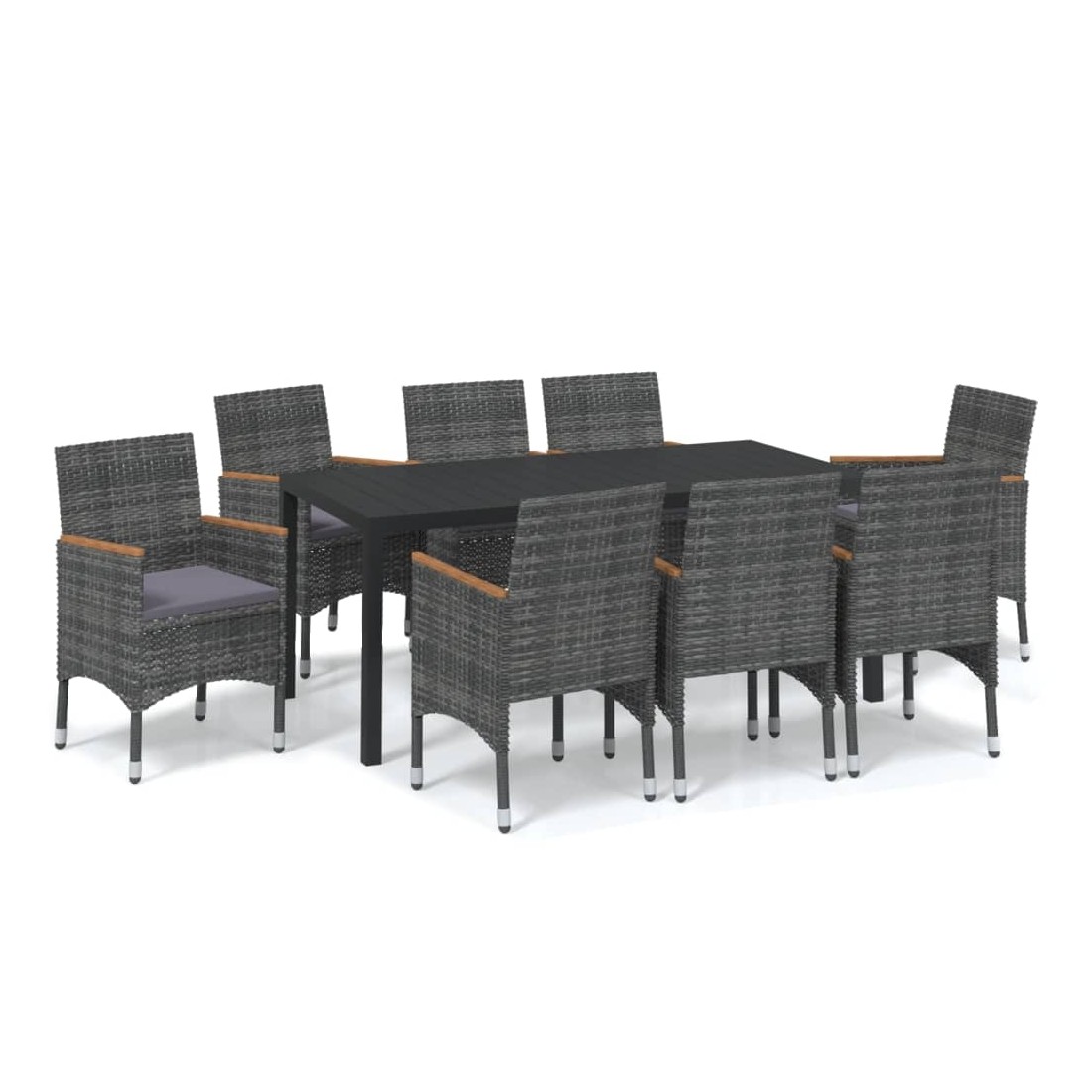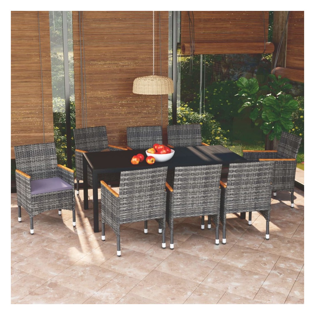 Cet ensemble de salle à manger de jardin est une combinaison parfaite de style et de fonctionnalité et est destiné à être le point de mire de votre jardin, balcon ou patio. Avec un cadre en acier robuste enveloppé de résine tressée résistante aux intempéries, les chaises de jardin sont à l'épreuve de la rouille et de la moisissure, offrant des années de détente de qualité. Les accoudoirs sont joliment décorés avec du bois d'acacia massif avec une finition à l'huile naturelle, ce qui apporte un sentiment de charme rustique. La table d'extérieur présente un dessus de table en WPC, facile à nettoyer et adapté à une utilisation à l'extérieur. Le cadre en aluminium assure également la stabilité et la robustesse. De plus, les coussins bien rembourrés offrent un confort ultime pendant votre temps assis. Cet ensemble de salle à manger de patio est facile à déplacer grâce à sa construction légère. Remarque : afin de prolonger la durée de vie des meubles d'extérieur, nous vous recommandons de les protéger avec une housse imperméable.