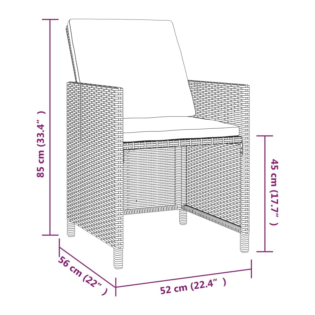 - Dimensions de la chaise : 52 x 56 x 85 cm (l x P x H)
