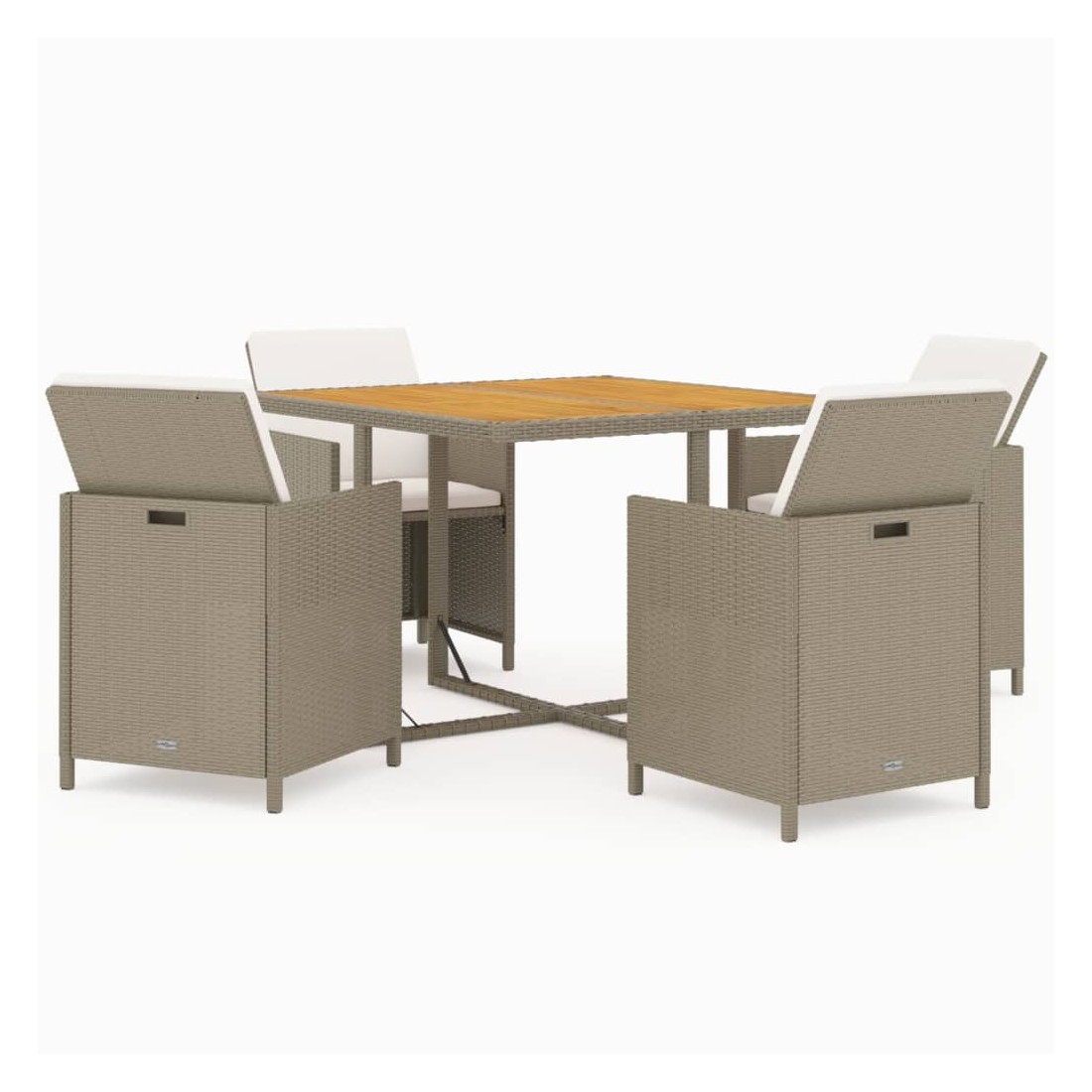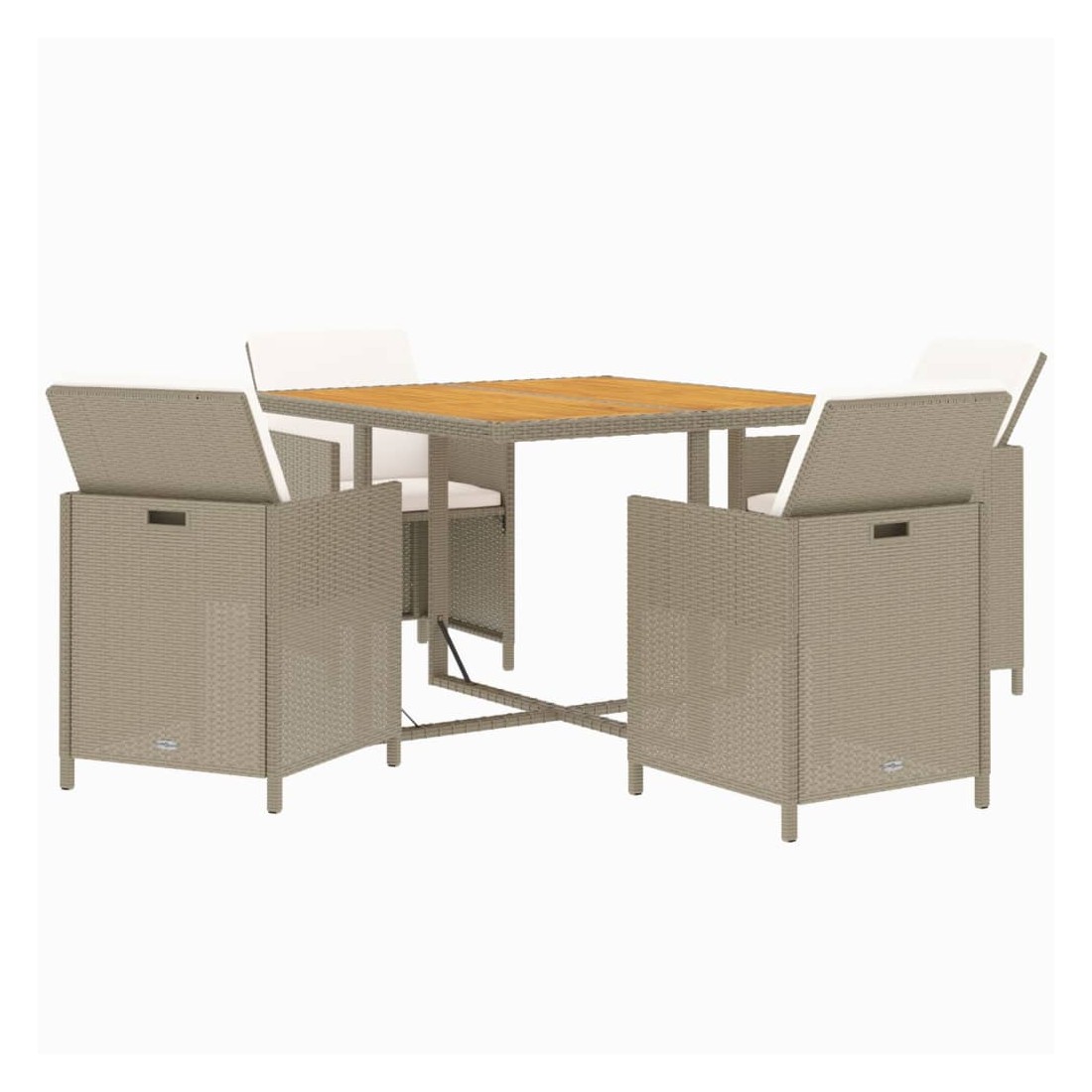 Ensemble à manger de jardin et coussins 5 pcs Poly rotin Beige