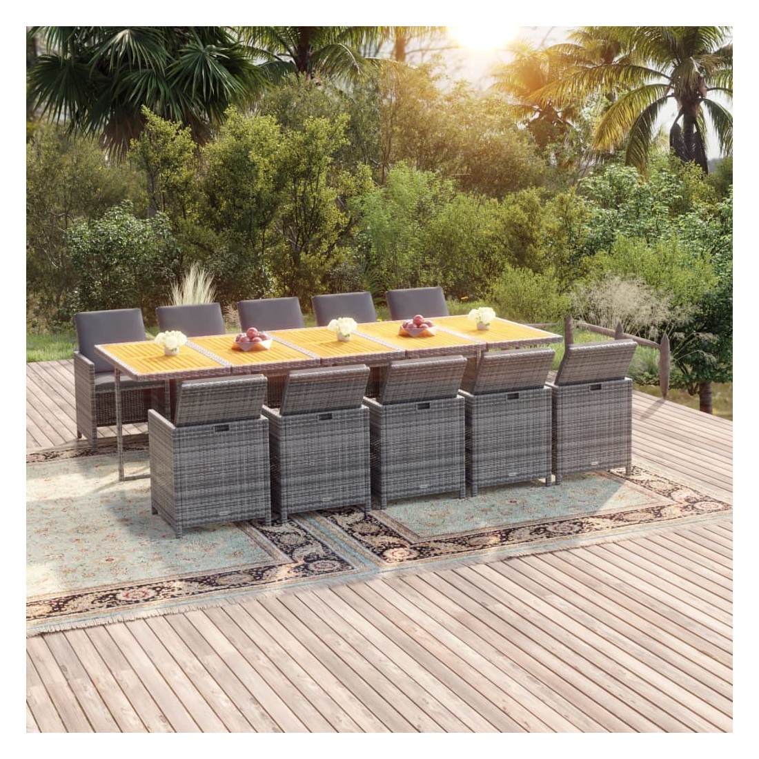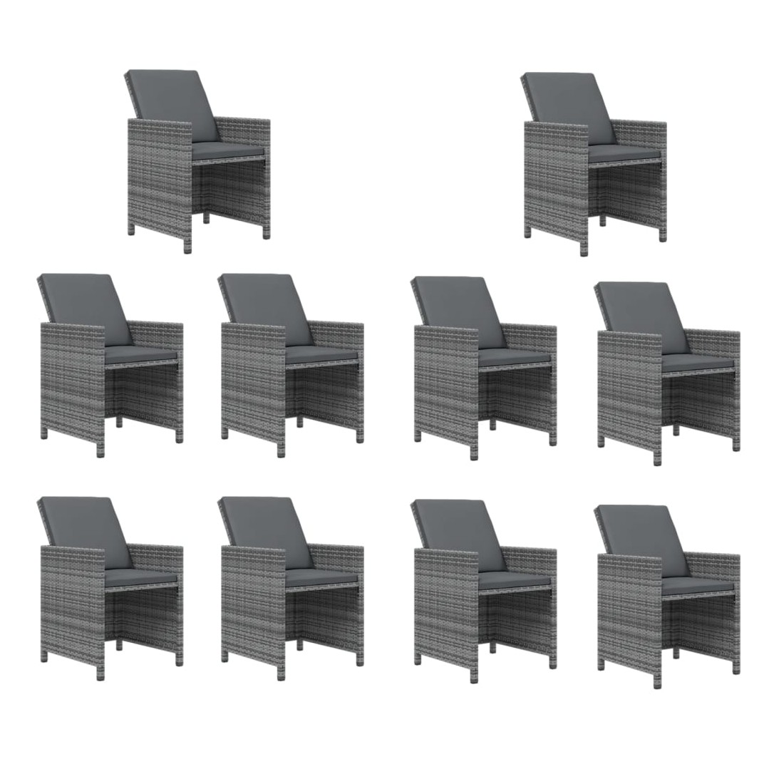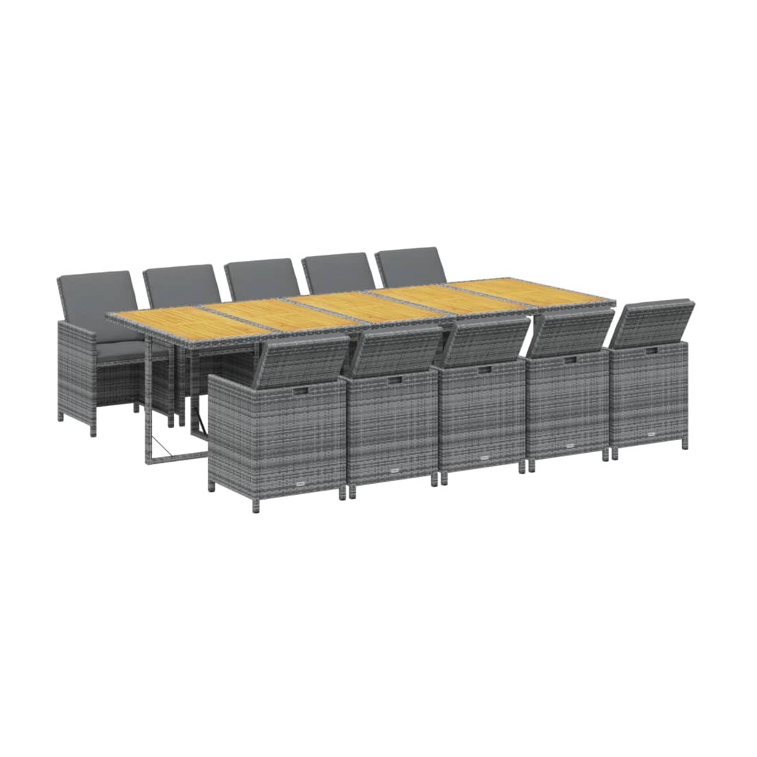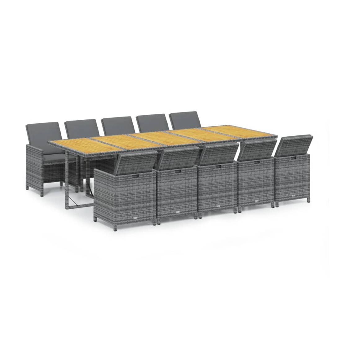 Ensemble à manger de jardin coussins 11 pcs Résine tressée Gris