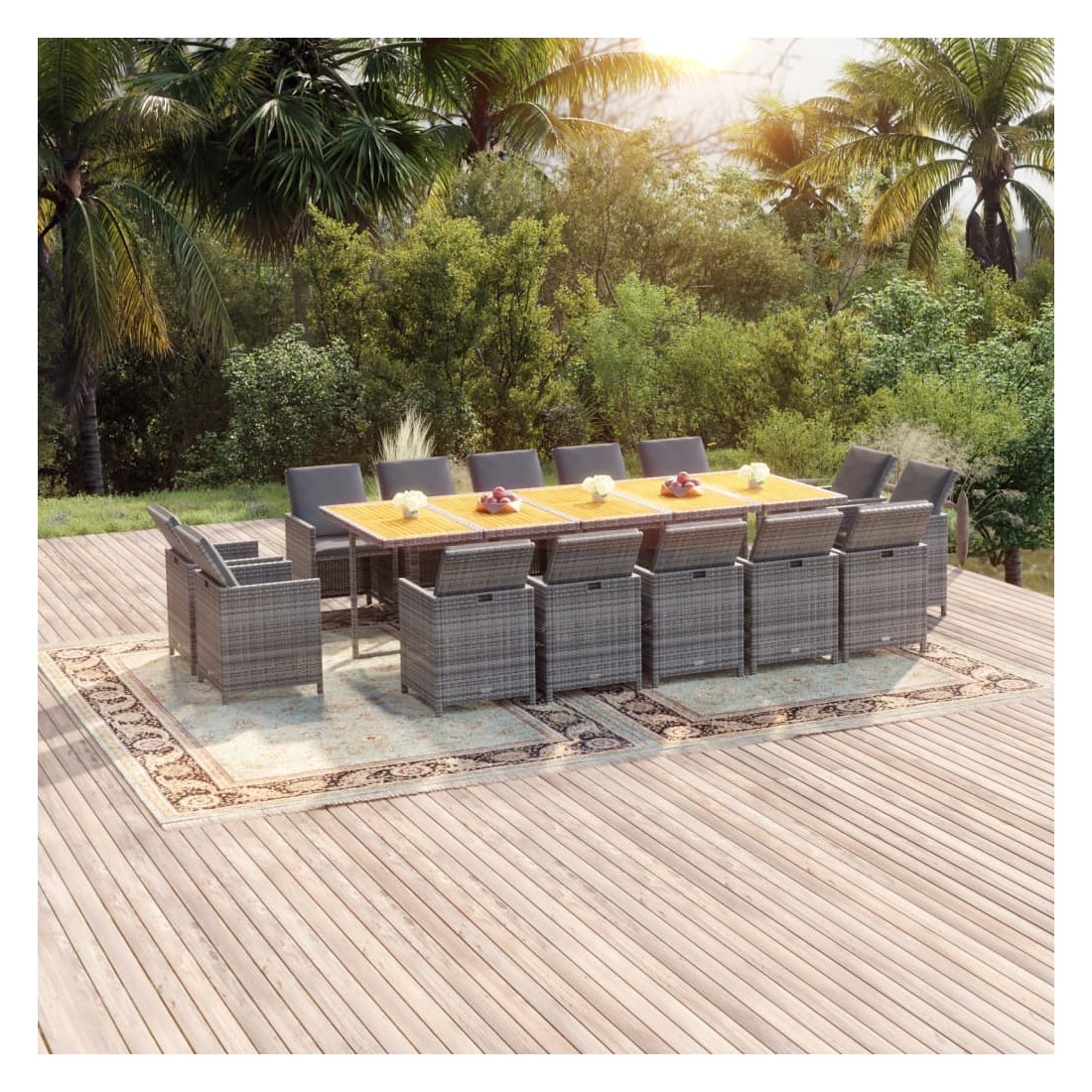 - Matériau : résine tressée, acier enduit de poudre, bois d'acacia massif avec finition à l'huile naturelle