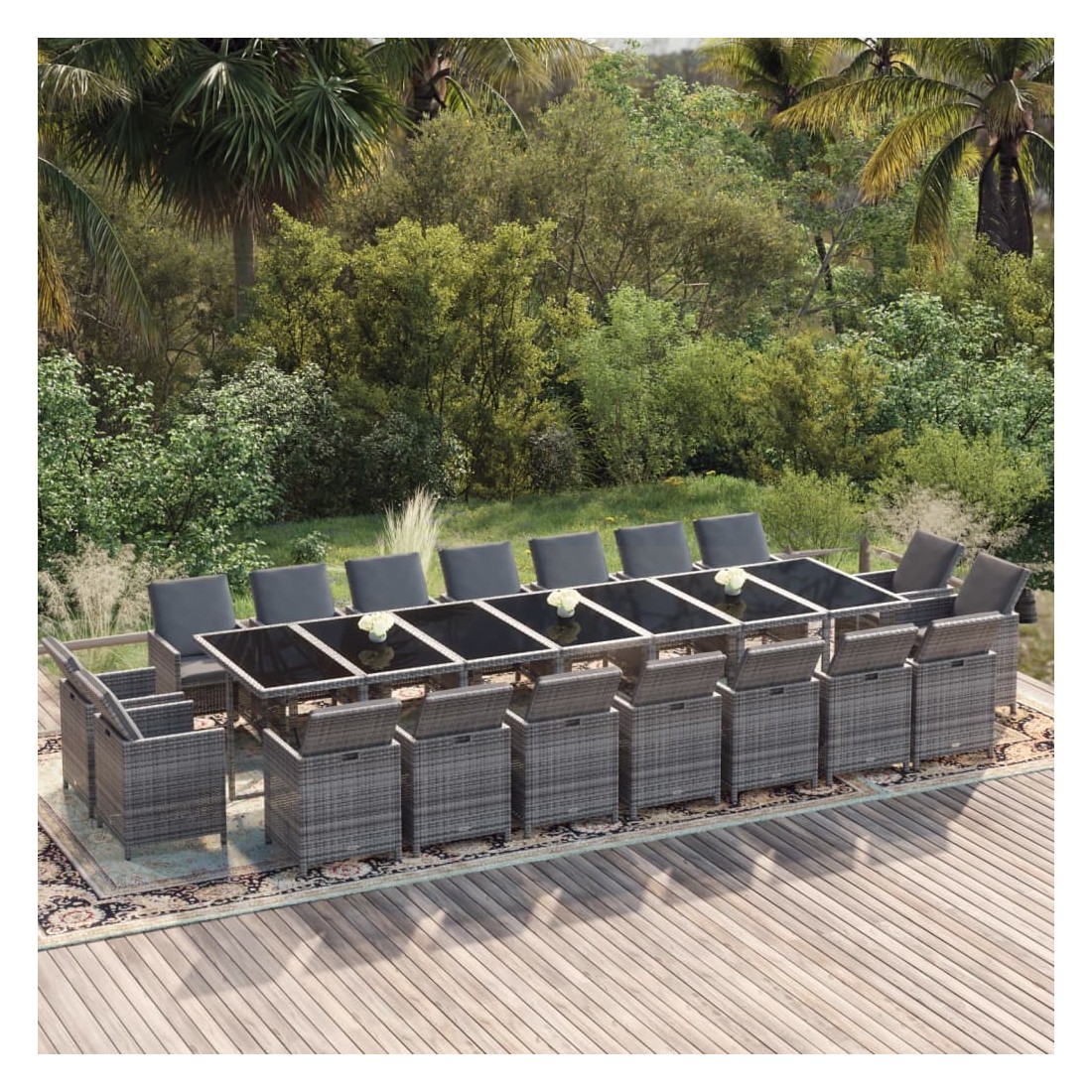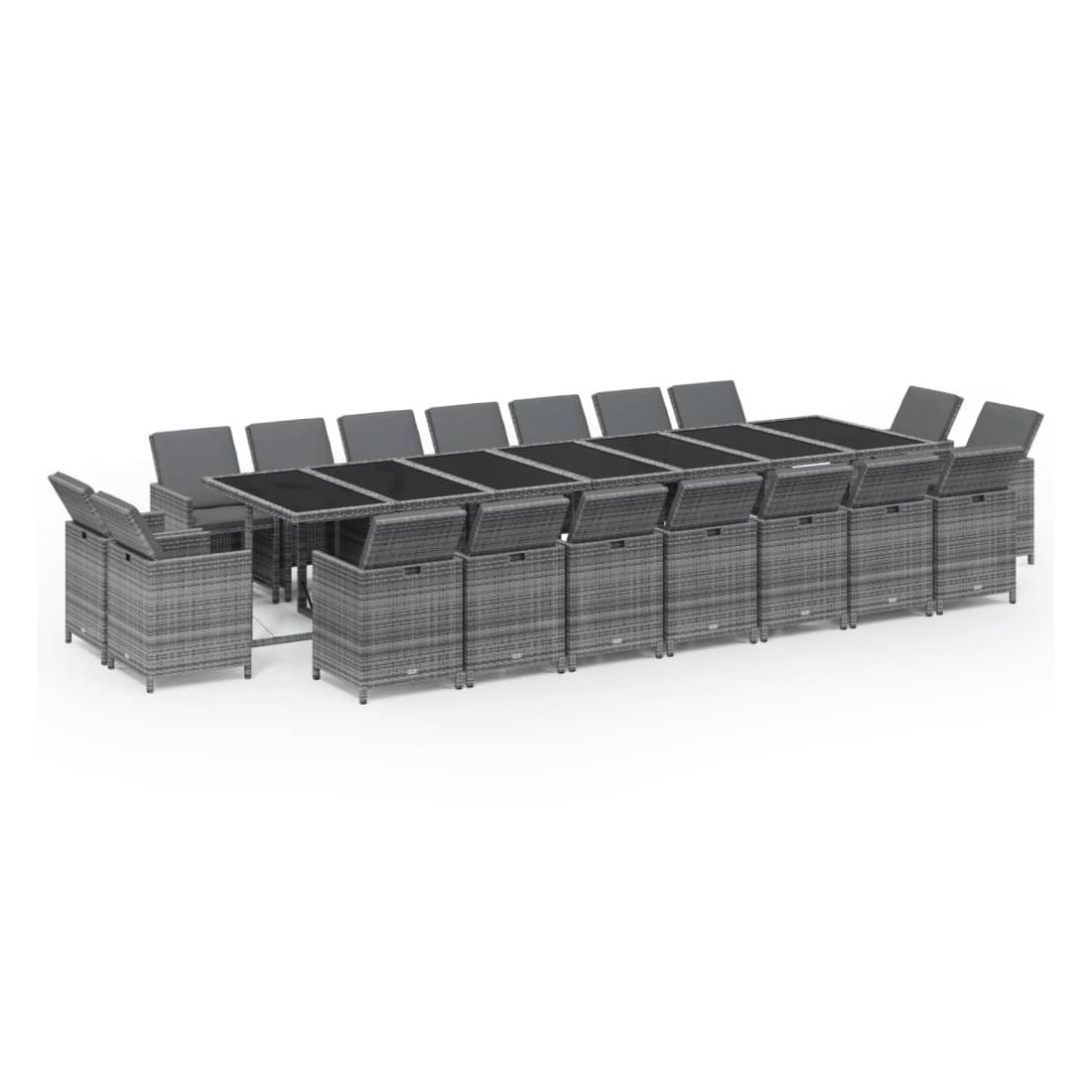 Cet ensemble de salle à manger de jardin en résine tressée, au design élégant et unique, est un excellent choix pour manger et vous détendre dans votre espace de vie extérieur. Matériau pratique : enveloppé de résine tressée résistante aux intempéries, cet ensemble de salle à manger d'extérieur est facile à nettoyer et résistant à l'usure, offrant des années de détente de qualité.Structure stable et solide : les cadres en acier de la table et des chaises de jardin assurent robustesse et stabilité.Chaises flexibles : vous pouvez tirer les dossiers vers le bas et ranger les chaises d'extérieur sous la table, économisant ainsi un espace de rangement précieux lorsque l'ensemble n'est pas utilisé. Grâce à sa conception légère, tous les articles sont faciles à déplacer.Expérience confortable : les coussins de siège et de dossier épais, doux et remplis de mousse ajoutent également un confort d'assise supplémentaire. Remarque :Afin de prolonger la durée de vie de votre mobilier d'extérieur, nous vous recommandons de le protéger avec une housse imperméable.