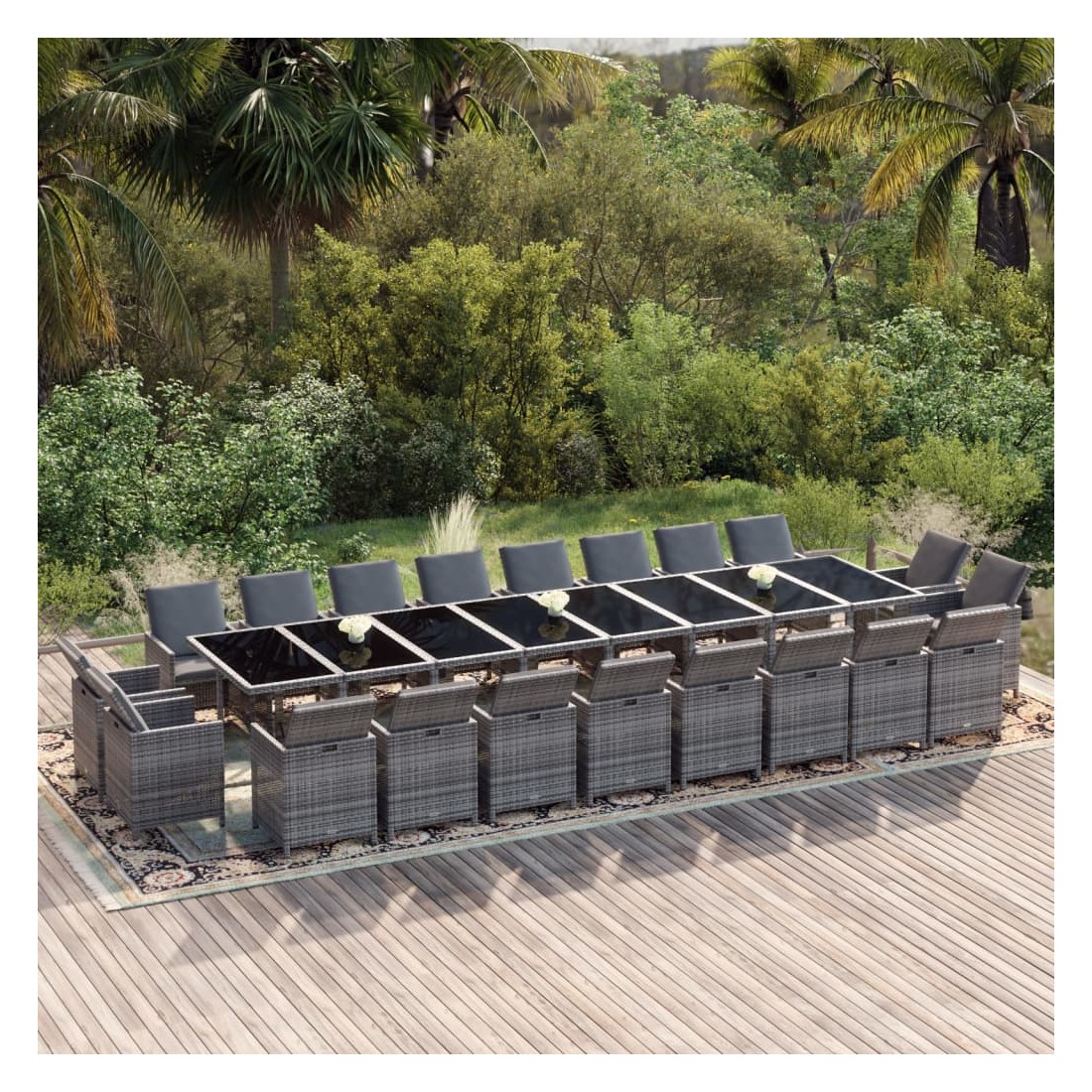 Ensemble à manger de jardin coussins 21 pcs Gris Résine tressée