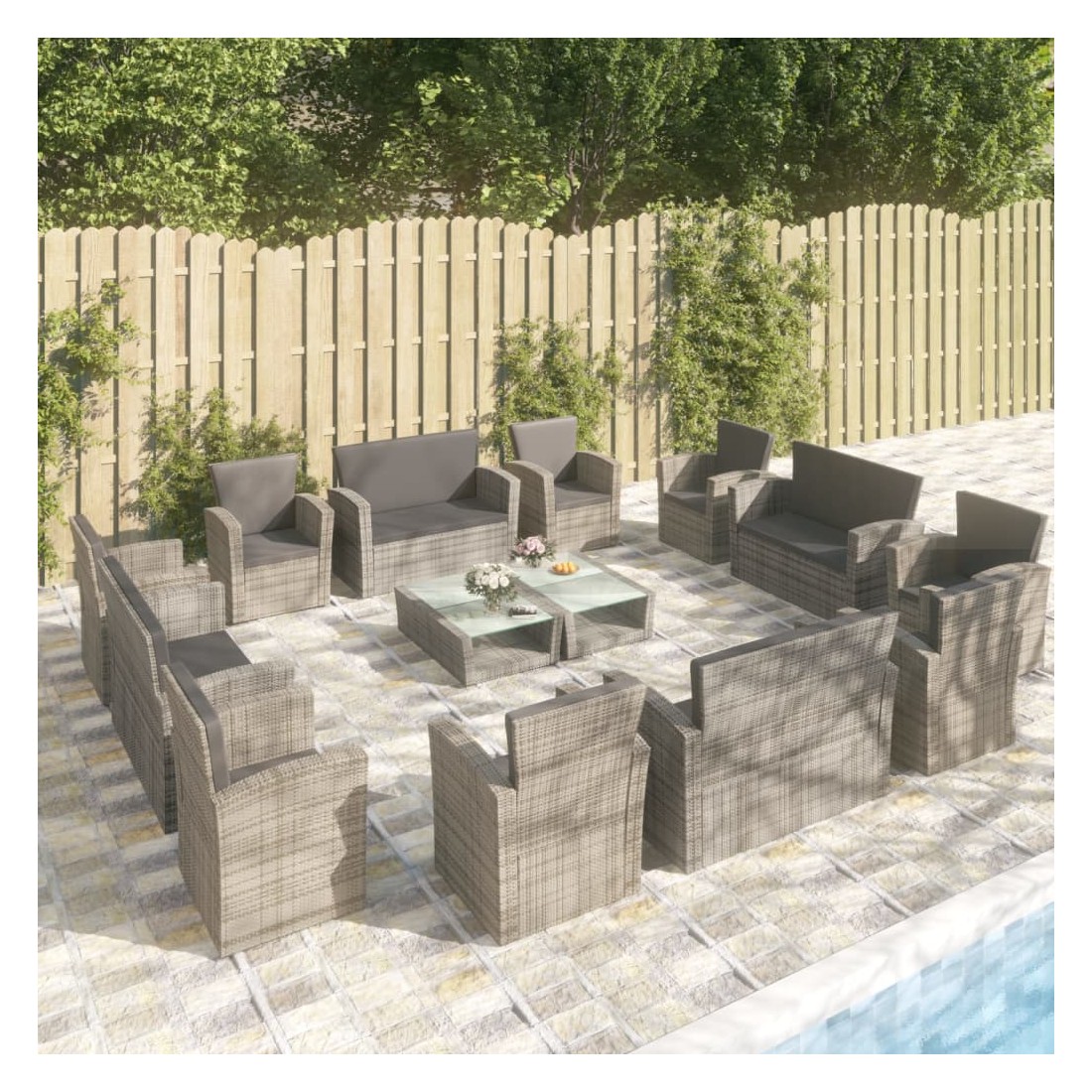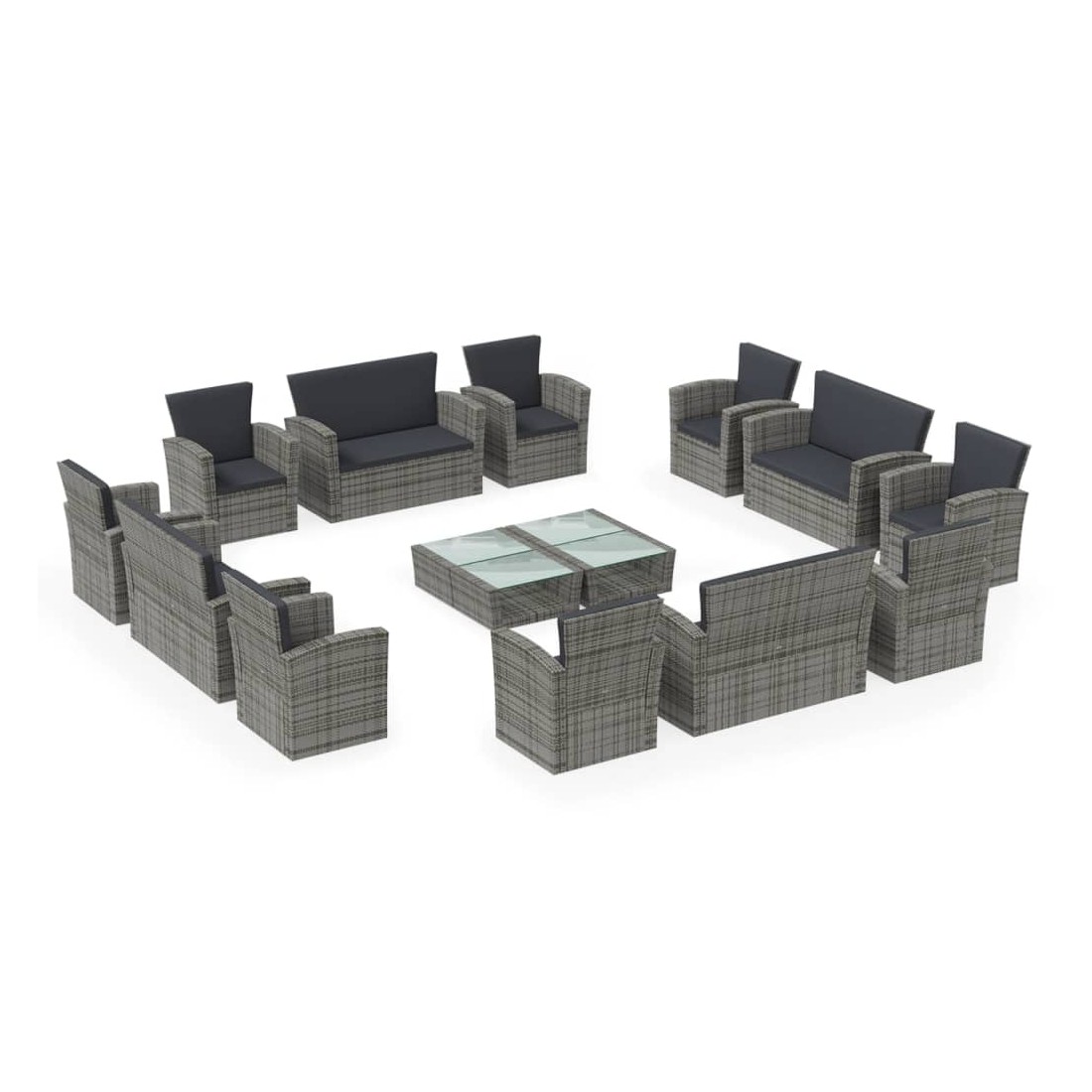 Créez un coin salon relaxant avec cet ensemble de salon de jardin en résine tressée. Avec un design élégant, il deviendra le point central de votre jardin ou terrasse ! L'ensemble de salon confortable a un cadre en acier enduit de poudre recouvert de résine tressée, ce qui le rend résistant et robuste. Grâce à leur construction légère, tous les articles sont faciles à déplacer. Le dessus de table en verre est également facile à nettoyer avec un chiffon humide. Les coussins bien rembourrés ajoutent un confort supplémentaire à votre temps de détente. De plus, les housses de coussin sont amovibles et lavables avec des fermetures éclair. Remarque : afin de prolonger la durée de vie des meubles d'extérieur, nous vous recommandons de les protéger avec une housse imperméable.
