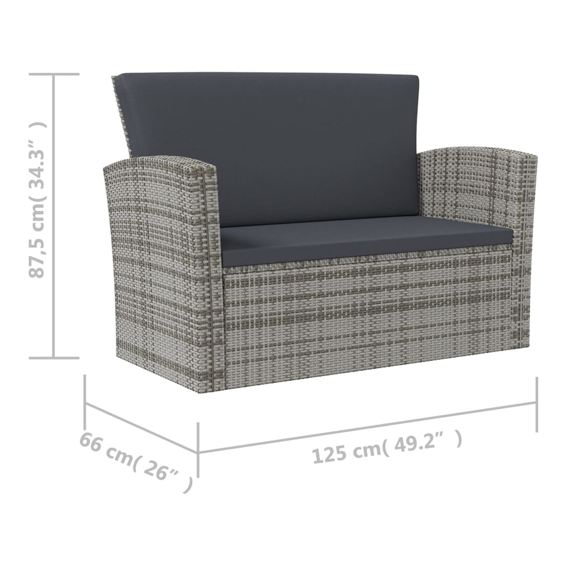 - Dimensions du canapé à 2 places : 125 x 66 x 87,5 cm (l x P x H)