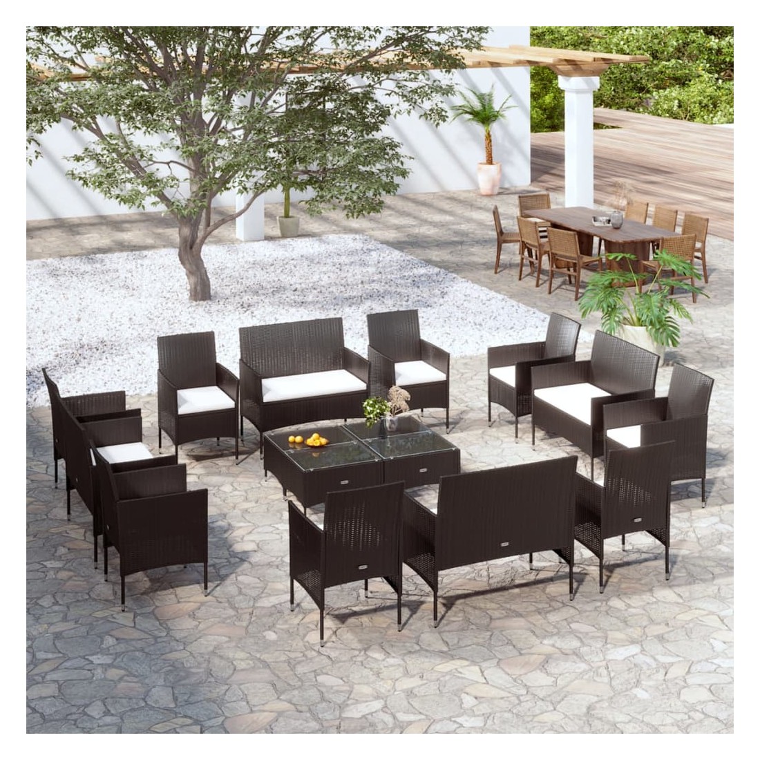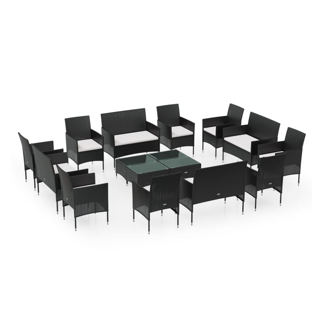 Salon de jardin 16 pcs avec coussins Résine tressée Noir