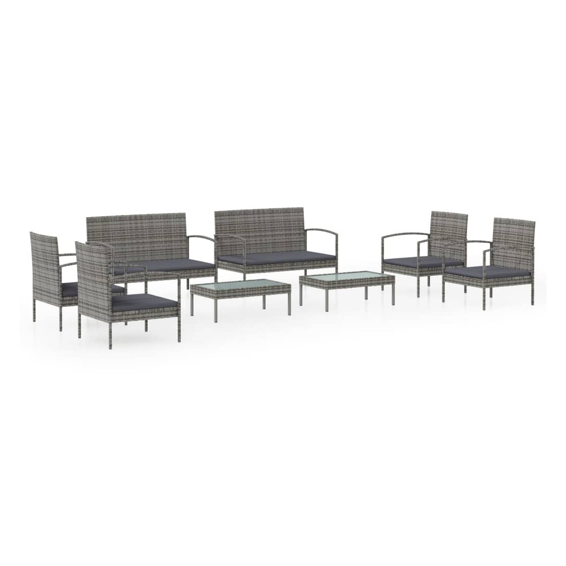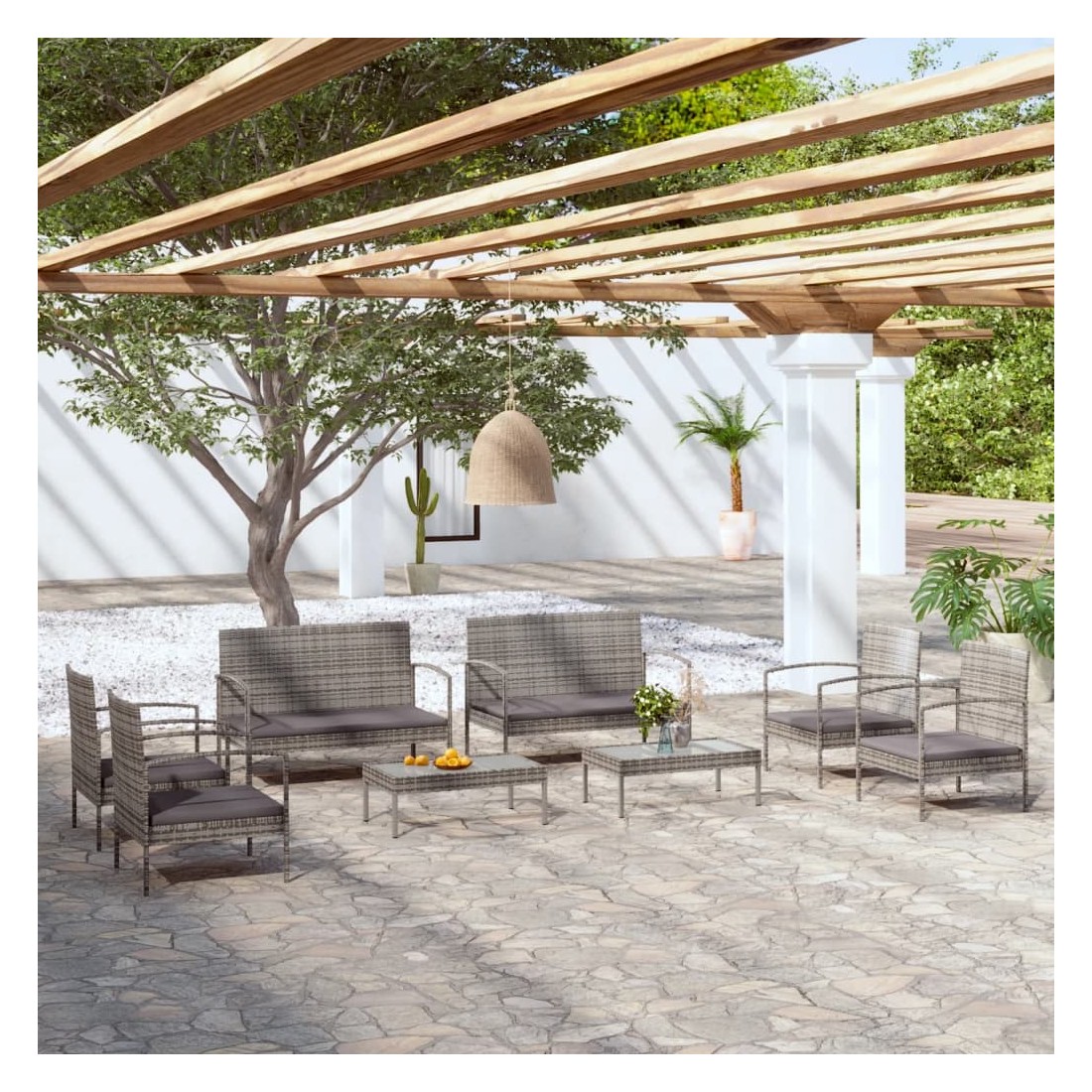 Salon de jardin 8 pcs avec coussins résine tressée gris
