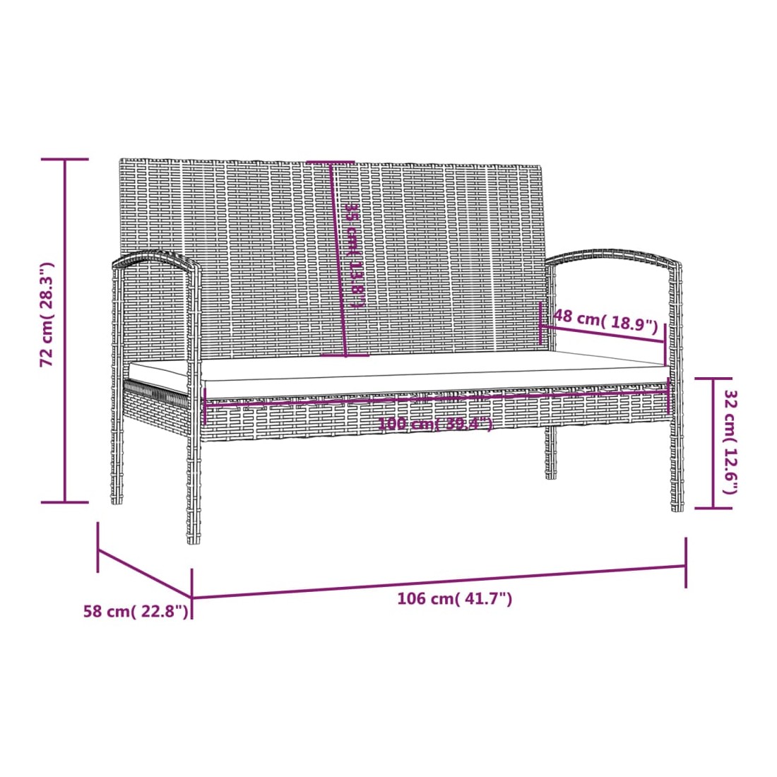 • Dimensions du canapé à 2 places : 106 x 58 x 72 cm (l x P x H)