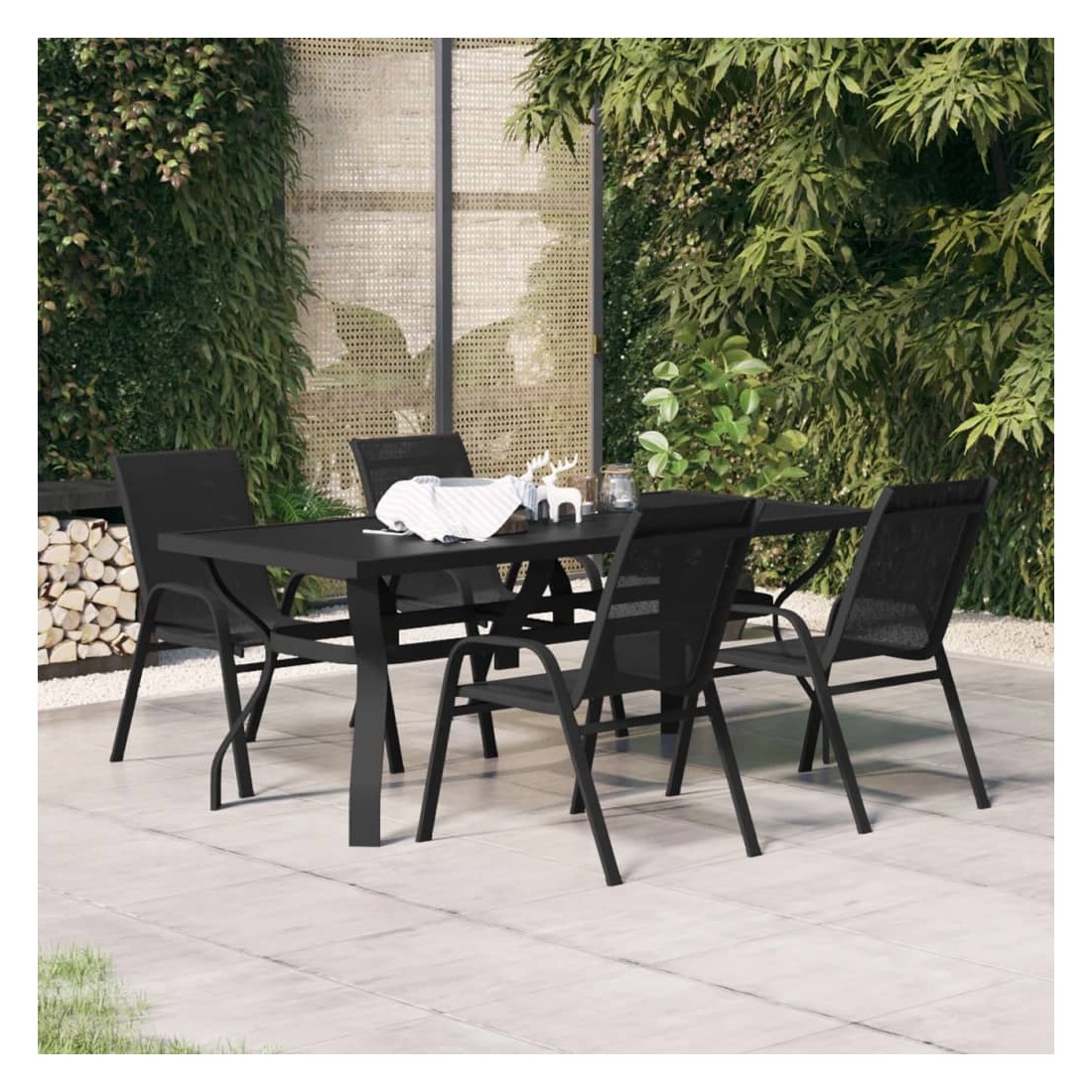 Cet ensemble de salle à manger de jardin, au design élégant, est un excellent choix pour dîner ou vous détendre sur votre patio ou dans votre jardin. Cadre robuste : la table et les chaises, dotées d'une structure en acier enduit de poudre, sont durables et stables. Matériau durable : grâce au tissu textilène résistant à l'eau et respirant, les chaises de jardin sont résistantes à l'usure, faciles à entretenir et convient à un usage quotidien à l'extérieur. Chaises peu encombrantes : les chaises sont parfaites pour votre balcon et autres petits espaces, car elles peuvent être empilées pour économiser de l'espace lorsqu'elles ne sont pas utilisées. Pieds de table élégants : les pieds de la table de patio sont élégamment fabriqués, avec des détails dynamiques courbés et assurant sa solid