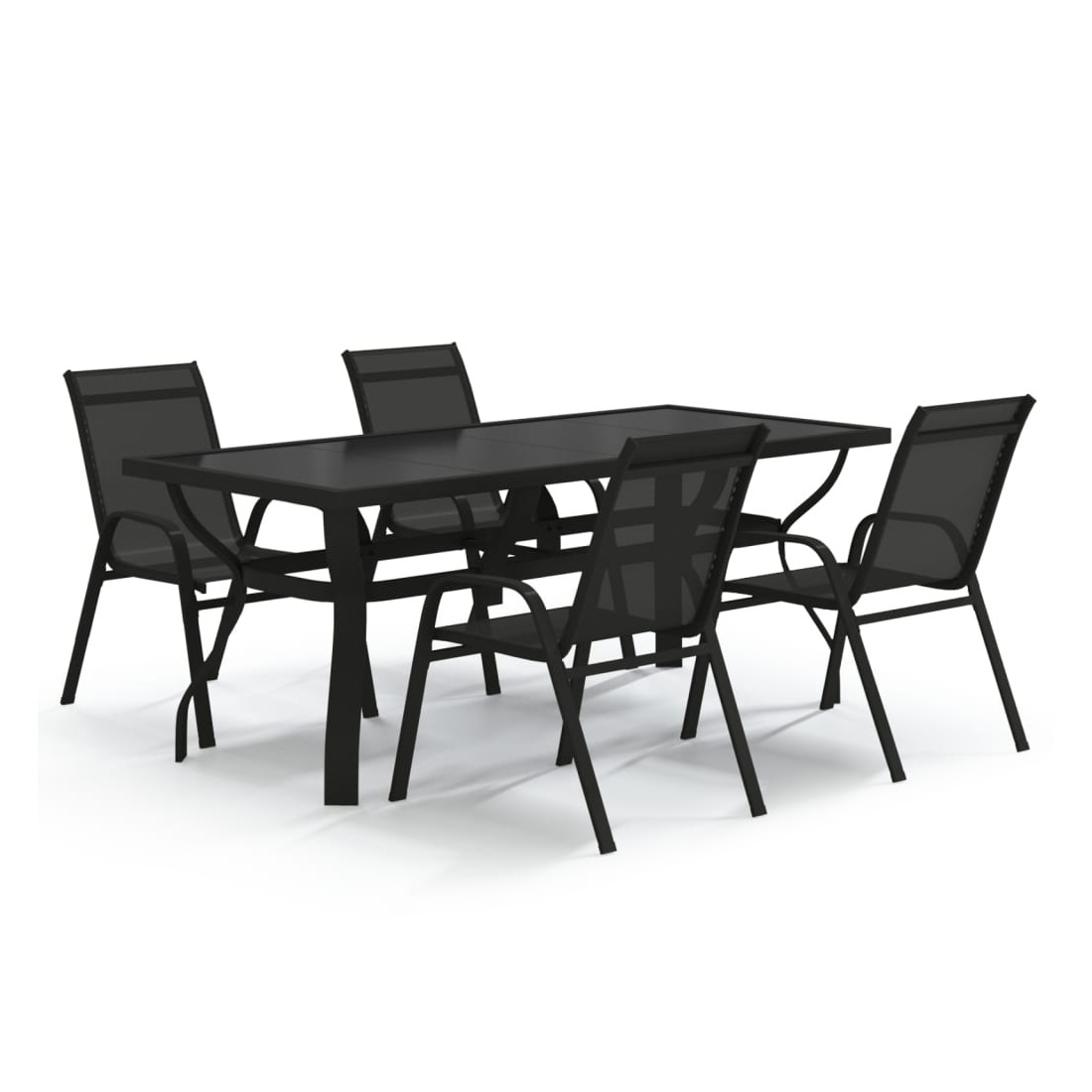 Cet ensemble de salle à manger de jardin, au design élégant, est un excellent choix pour dîner ou vous détendre sur votre patio ou dans votre jardin. Cadre robuste : la table et les chaises, dotées d'une structure en acier enduit de poudre, sont durables et stables.Matériau durable : grâce au tissu textilène résistant à l'eau et respirant, les chaises de jardin sont résistantes à l'usure, faciles à entretenir et convient à un usage quotidien à l'extérieur.Chaises peu encombrantes : les chaises sont parfaites pour votre balcon et autres petits espaces, car elles peuvent être empilées pour économiser de l'espace lorsqu'elles ne sont pas utilisées.Pieds de table élégants : les pieds de la table de patio sont élégamment fabriqués, avec des détails dynamiques courbés et assurant sa solidité et sa beauté. C'est pourquoi il s'agit d'une pièce remarquable pour votre extérieur.Dessus pratique et facile à nettoyer : le dessus de table en verre lisse est facile à nettoyer à l'aide d'un chiffon humide et est parfait pour placer des repas, des boissons et d'autres objets décoratifs. Remarque :Afin de prolonger la durée de vie de votre mobilier d'extérieur, nous vous recommandons de le protéger avec une housse imperméable.