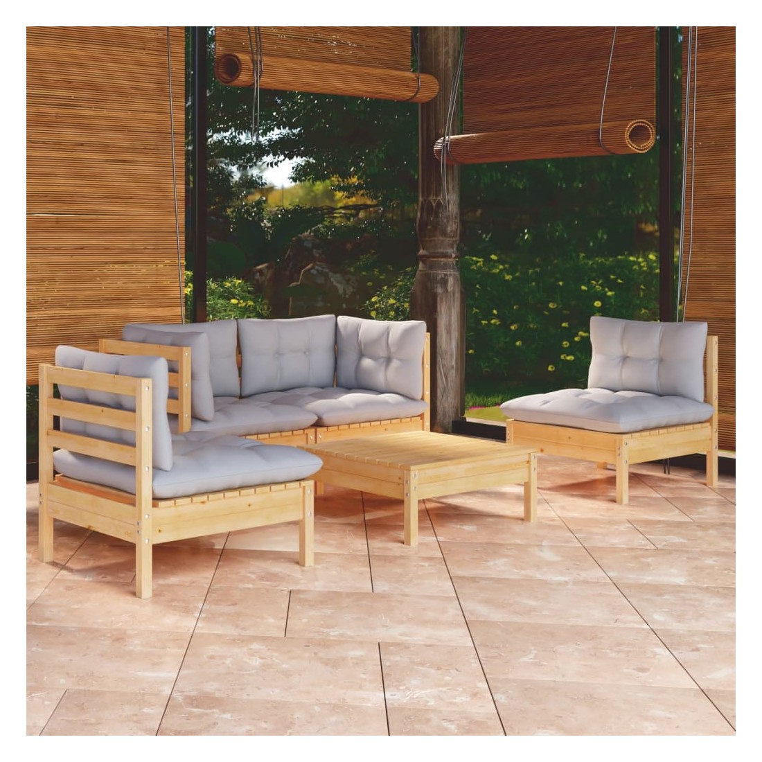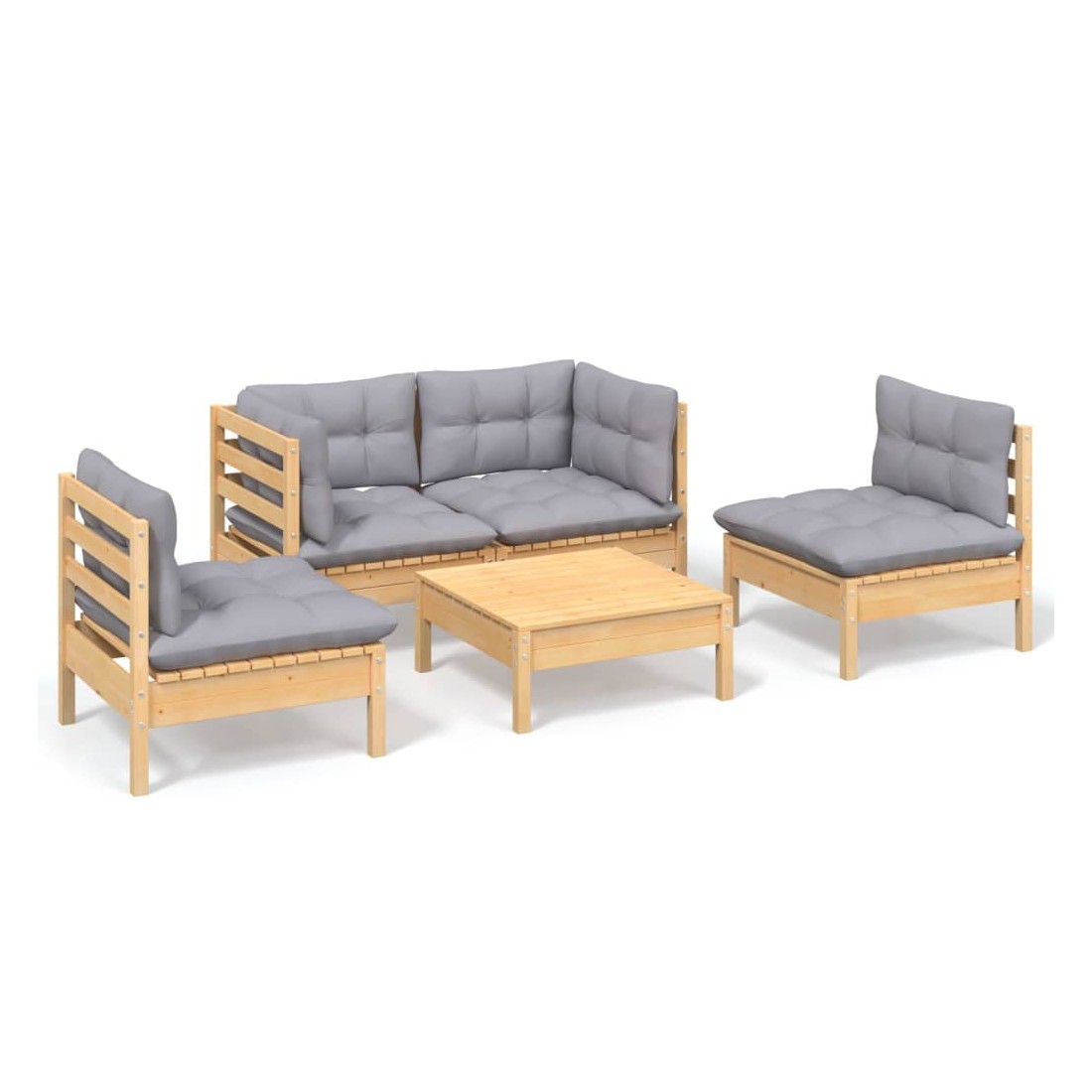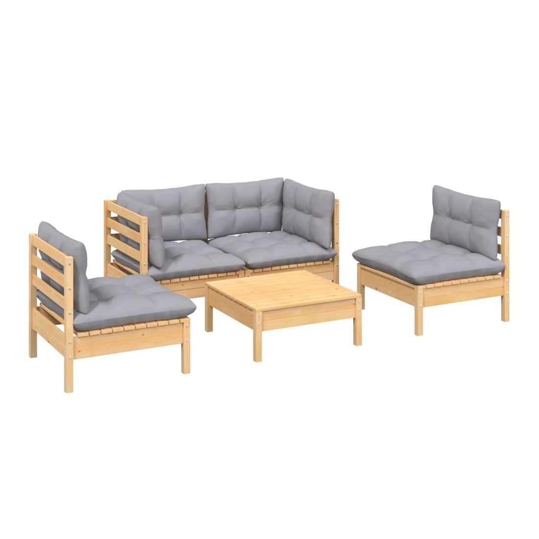 Salon de jardin 5 pcs avec coussins gris bois de pin massif