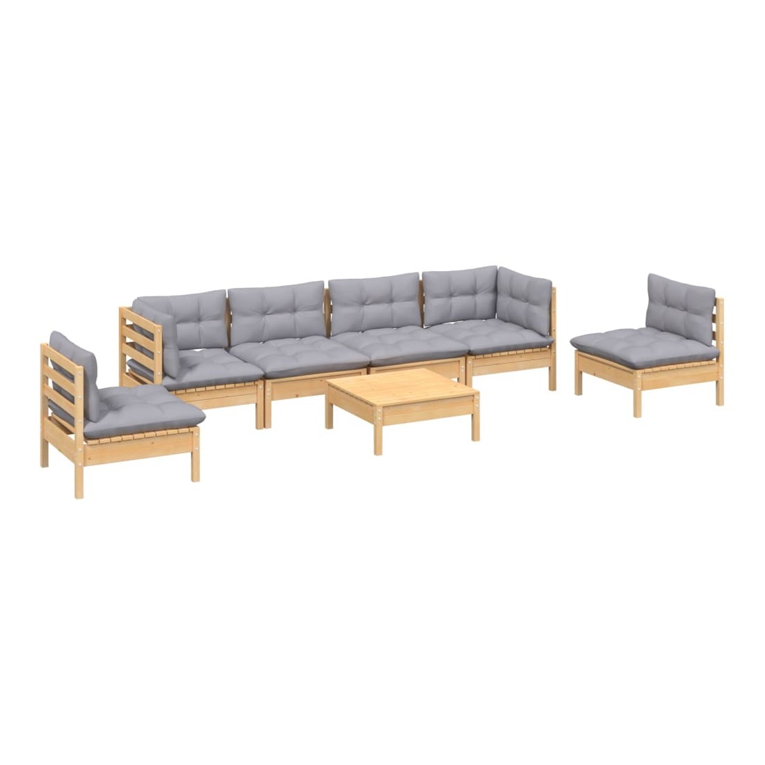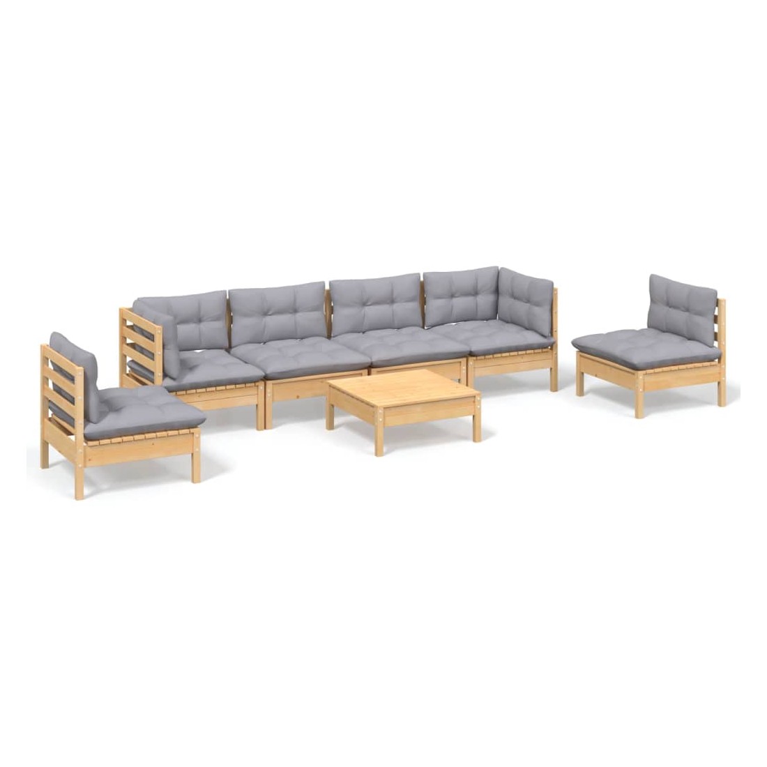 Salon de jardin 7 pcs avec coussins gris bois de pin massif