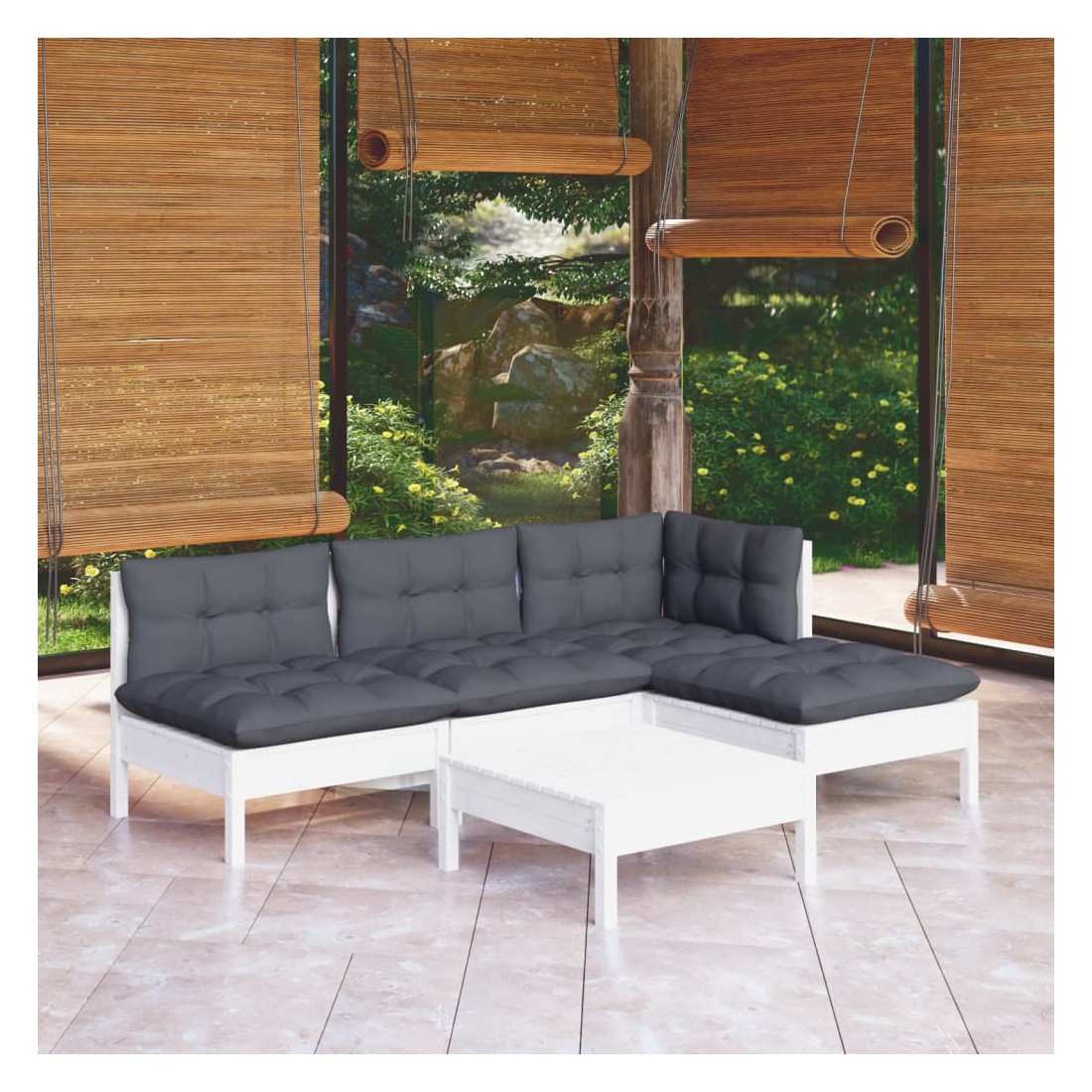 Cet ensemble de salon de jardin en bois est un choix excellent pour vous détendre et profiter du bon temps, faire une sieste ou discuter avec votre famille ou vos amis. Le salon de patio est fabriqué en bois de pin massif, ce qui le rend robuste et stable. Les coussins ajoutent un confort supplémentaire. Vous pouvez le combiner avec d’autres segments modulaires pour créer vos propres configurations de salon de jardin ! Remarque : afin de prolonger la durée de vie des meubles d'extérieur, nous vous recommandons de les protéger avec une housse imperméable.