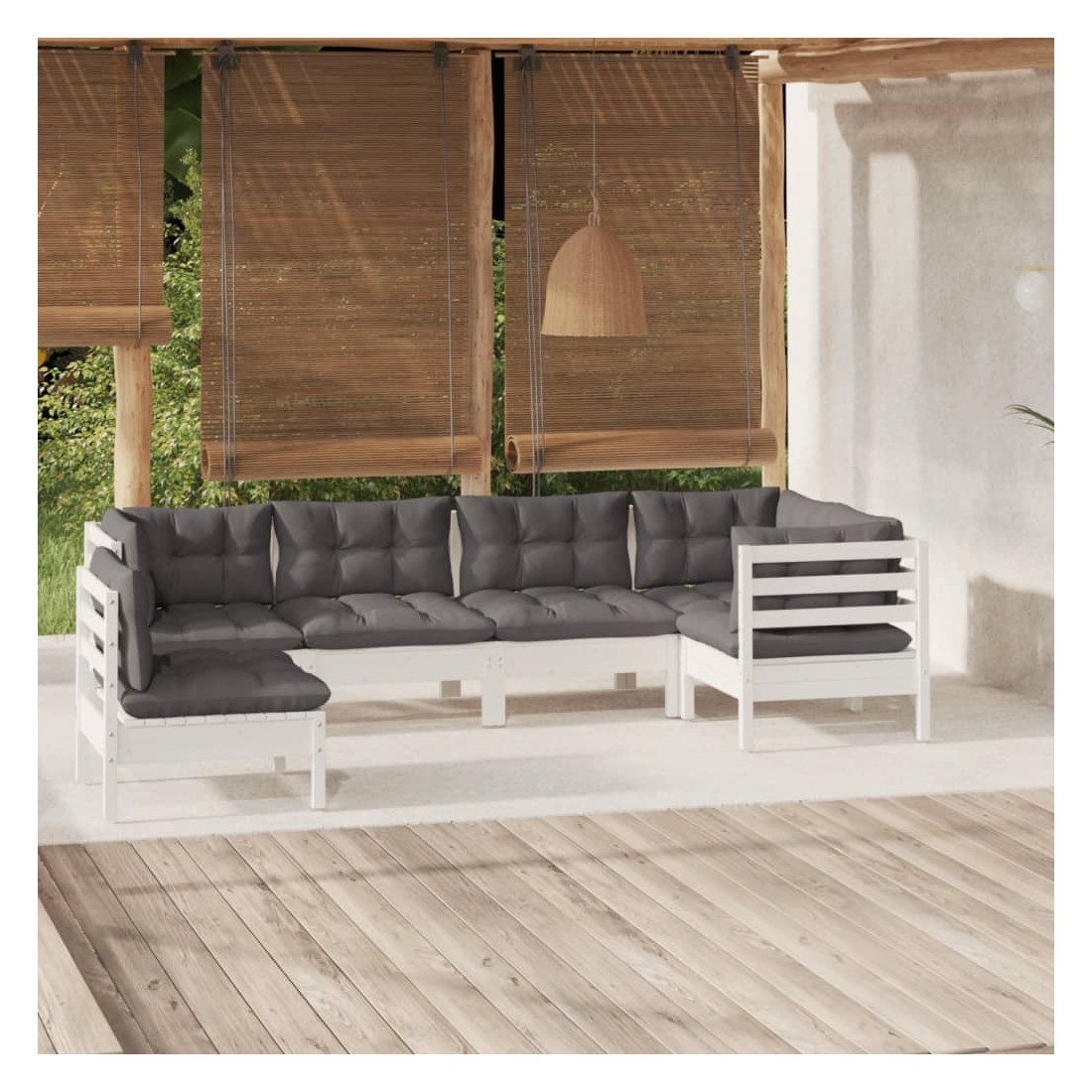 Cet ensemble de salon de jardin en bois est un choix excellent pour vous détendre et profiter du bon temps, faire une sieste ou discuter avec votre famille ou vos amis. Le salon de patio est fabriqué en bois de pin massif, ce qui le rend robuste et stable. Les coussins ajoutent un confort supplémentaire. Vous pouvez le combiner avec d’autres segments modulaires pour créer vos propres configurations de salon de jardin ! Remarque : afin de prolonger la durée de vie des meubles d'extérieur, nous vous recommandons de les protéger avec une housse imperméable.