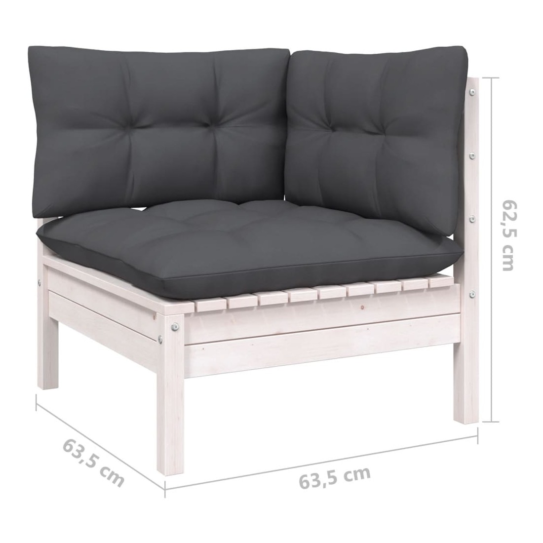 - Dimensions du canapé central/d'angle : 63,5 x 63,5 x 62,5 cm (l x P x H)