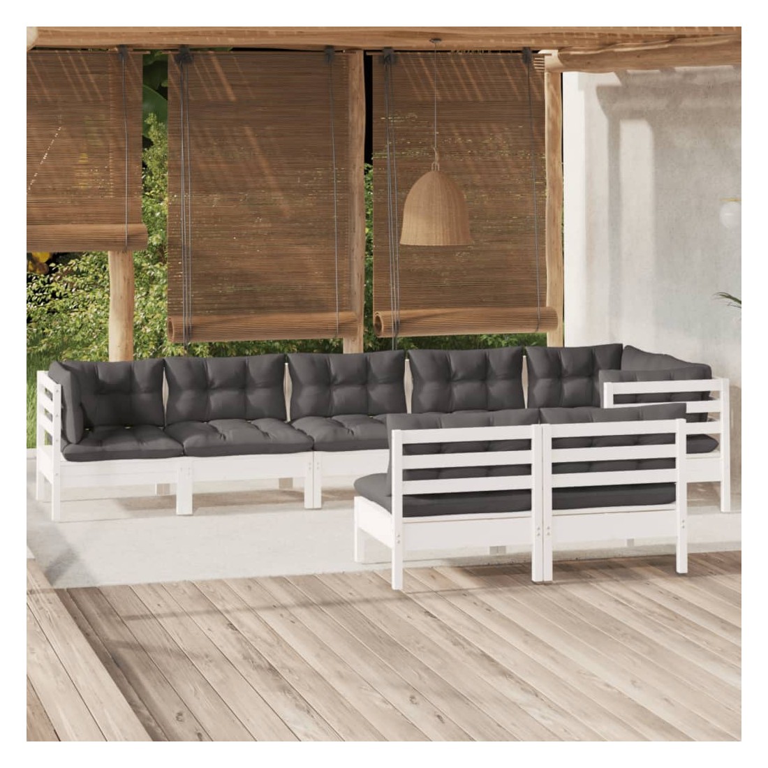 Ce salon de jardin est un excellent choix pour vous détendre et profiter du beau temps, faire une sieste ou discuter avec votre famille ou vos amis. Le salon de patio est fabriqué en bois de pin massif, ce qui le rend robuste et stable. Les coussins ajoutent un confort supplémentaire. Vous pouvez le combiner avec d’autres segments modulaires pour créer vos propres configurations de salon de jardin ! Remarque : afin de prolonger la durée de vie des meubles d'extérieur, nous vous recommandons de les protéger avec une housse imperméable.