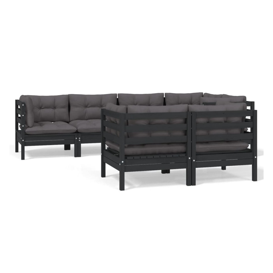 Salon de jardin 7 pcs avec coussins Noir Bois de pin massif