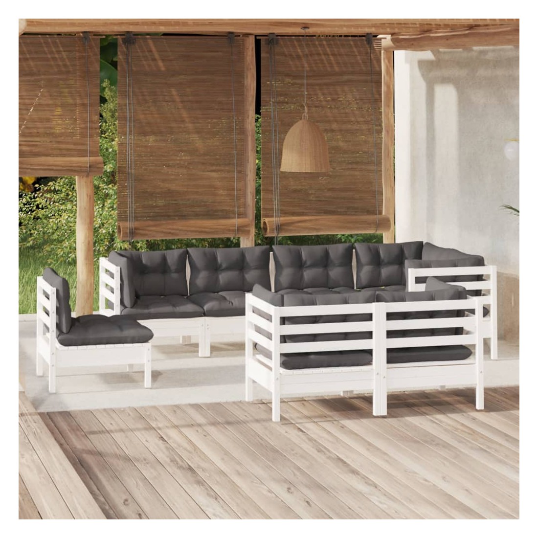 Ce salon de jardin est un excellent choix pour vous détendre et profiter du beau temps, faire une sieste ou discuter avec votre famille ou vos amis. Le salon de patio est fabriqué en bois de pin massif, ce qui le rend robuste et stable. Les coussins ajoutent un confort supplémentaire. Vous pouvez le combiner avec d’autres segments modulaires pour créer vos propres configurations de salon de jardin ! Remarque : afin de prolonger la durée de vie des meubles d'extérieur, nous vous recommandons de les protéger avec une housse imperméable.