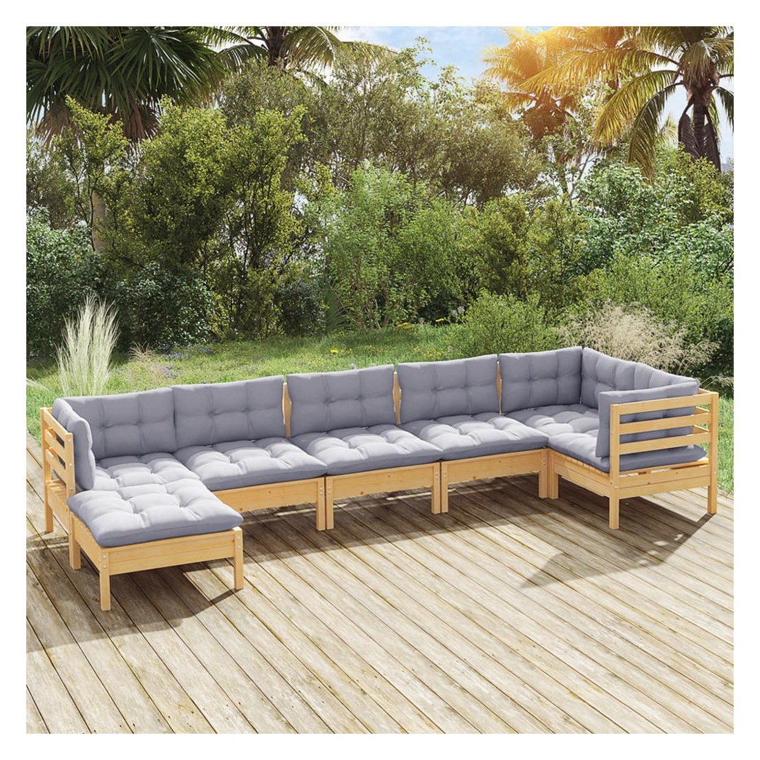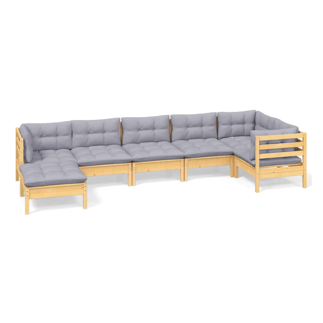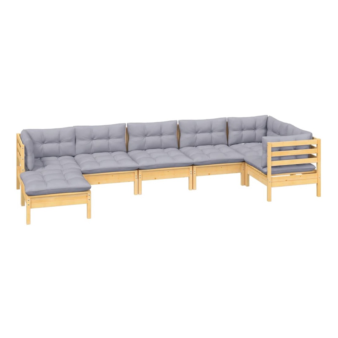 Salon de jardin 7 pcs avec coussins gris bois de pin massif