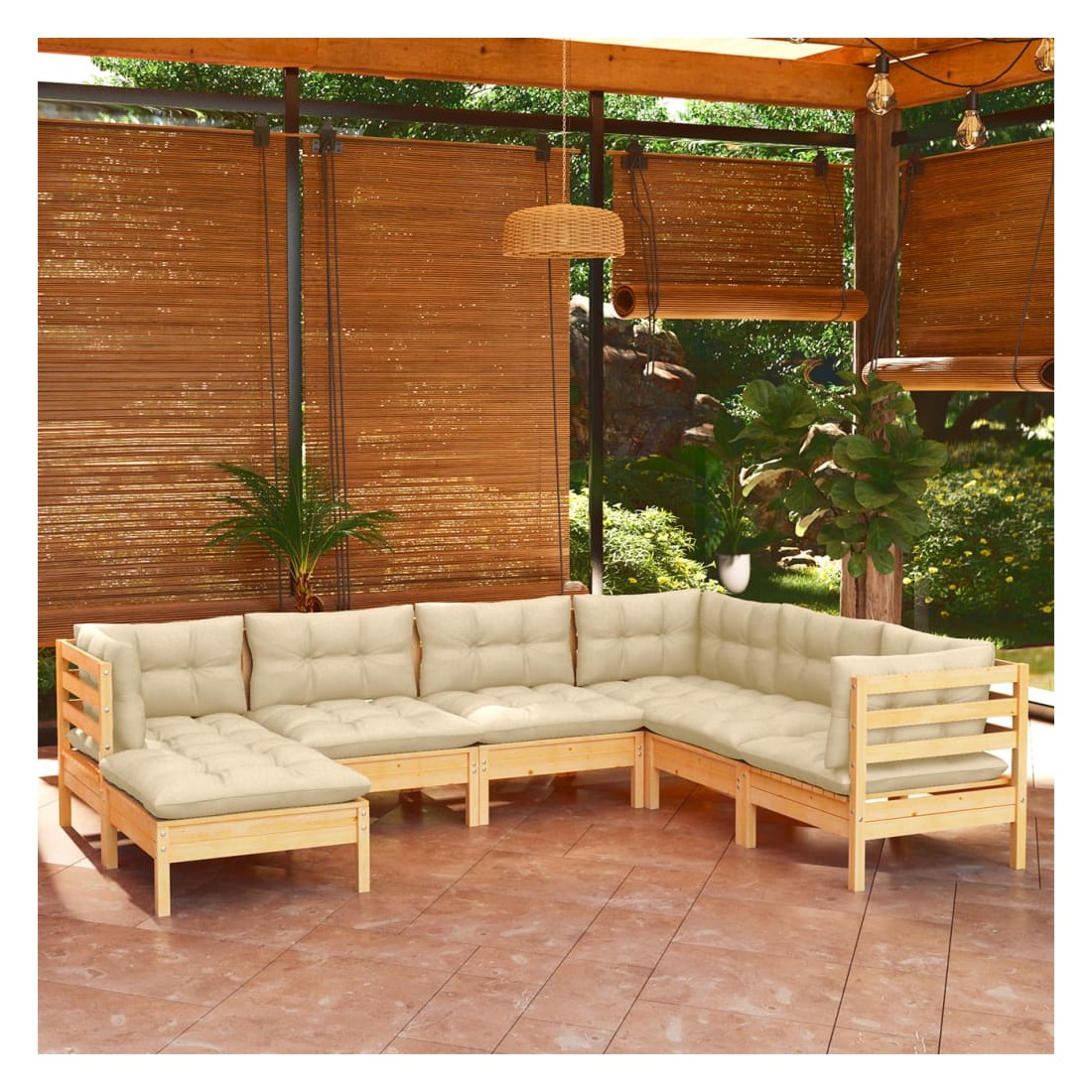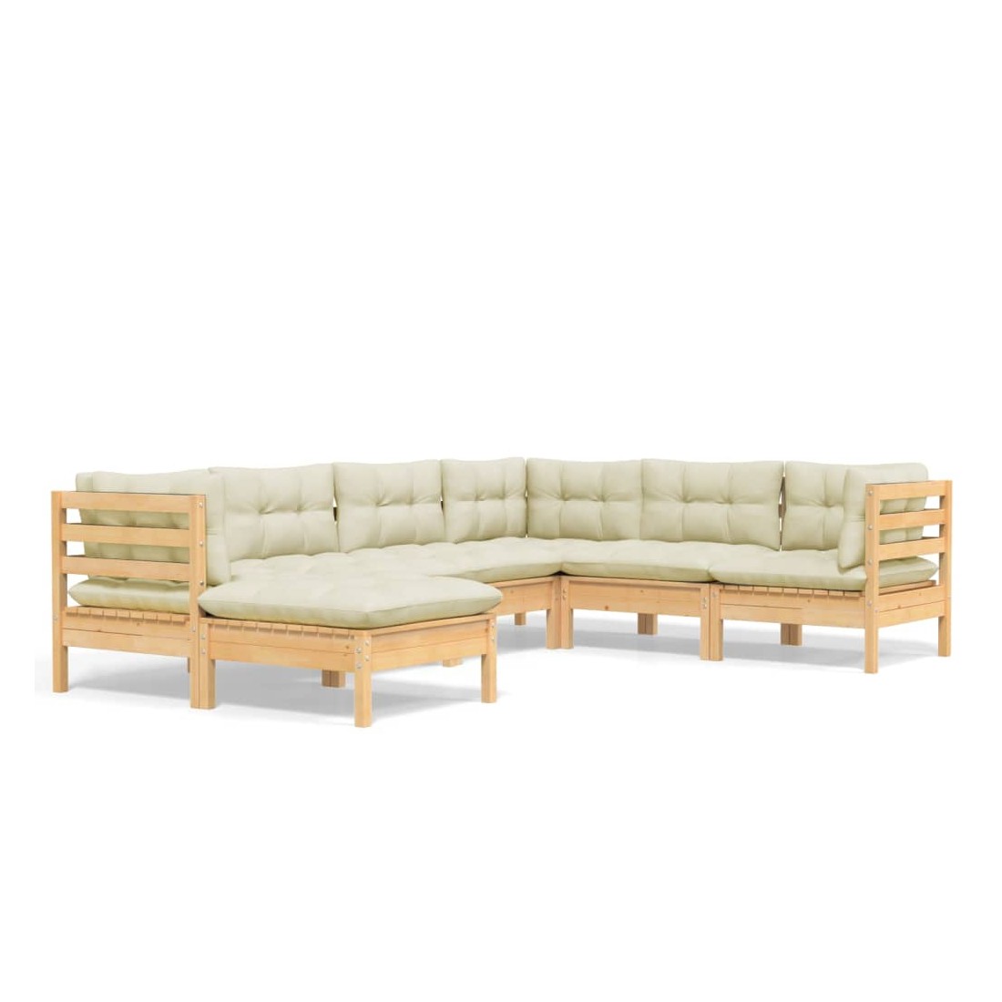 Salon de jardin 7 pcs avec coussins crème bois de pin massif