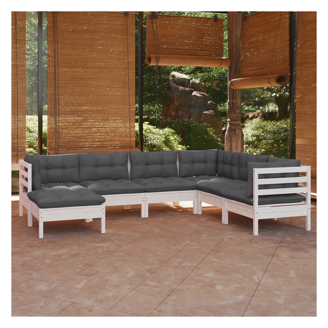 Ce salon de jardin est un excellent choix pour vous détendre et profiter du beau temps, faire une sieste ou discuter avec votre famille ou vos amis. Le salon de patio est fabriqué en bois de pin massif, ce qui le rend robuste et stable. Les coussins ajoutent un confort supplémentaire. Vous pouvez le combiner avec d’autres segments modulaires pour créer vos propres configurations de salon de jardin ! Remarque : afin de prolonger la durée de vie des meubles d'extérieur, nous vous recommandons de les protéger avec une housse imperméable.