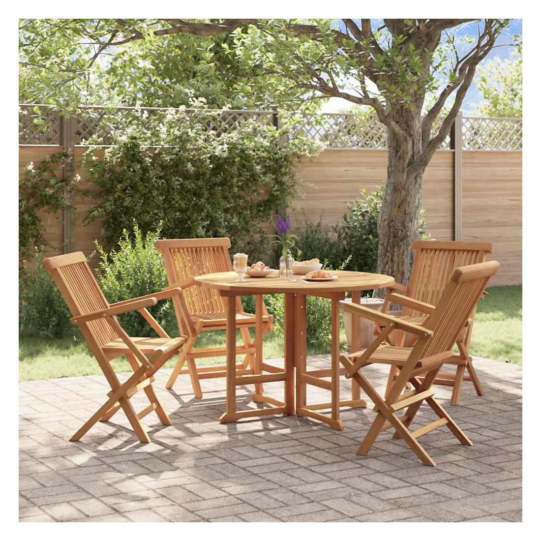 Cet élégant ensemble de salle à manger d'extérieur en bois présente un design élégant et constitue un excellent choix pour les repas en plein air ou pour vous détendre avec vos amis dans le jardin ou sur le patio. Bois de teck massif : le bois de teck massif est un matériau naturel magnifique. Il a été chevronné, séché au four, puis sablé finement pour lui donner une apparence très lisse. Le bois de teck est connu pour sa résistance exceptionnelle et sa résistance aux intempéries.Design pliable : la table et les chaises à dîner peuvent être pliées pour économiser de l'espace lorsqu'elles ne sont pas utilisées.Cadre robuste : les cadres en bois de la table et des chaises de patio assurent robustesse et stabilité. Remarque :Afin de prolonger la durée de vie de votre mobilier d'extérieur, nous vous recommandons de le protéger avec une housse imperméable.
